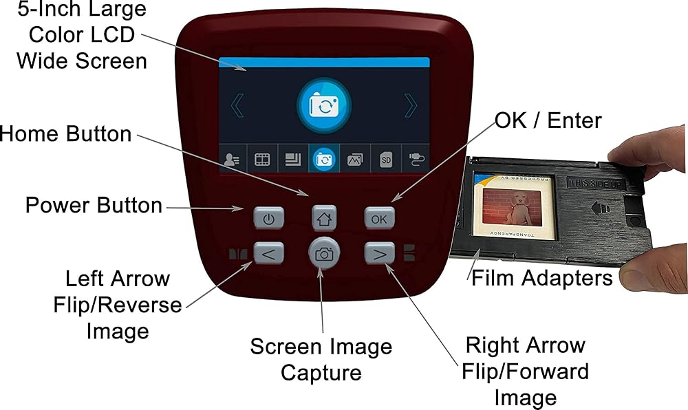 LARGE 5-INCH LCD SCREEN - NO COMPUTER NEEDED. Works as Stand Alone Scanner. No software needed