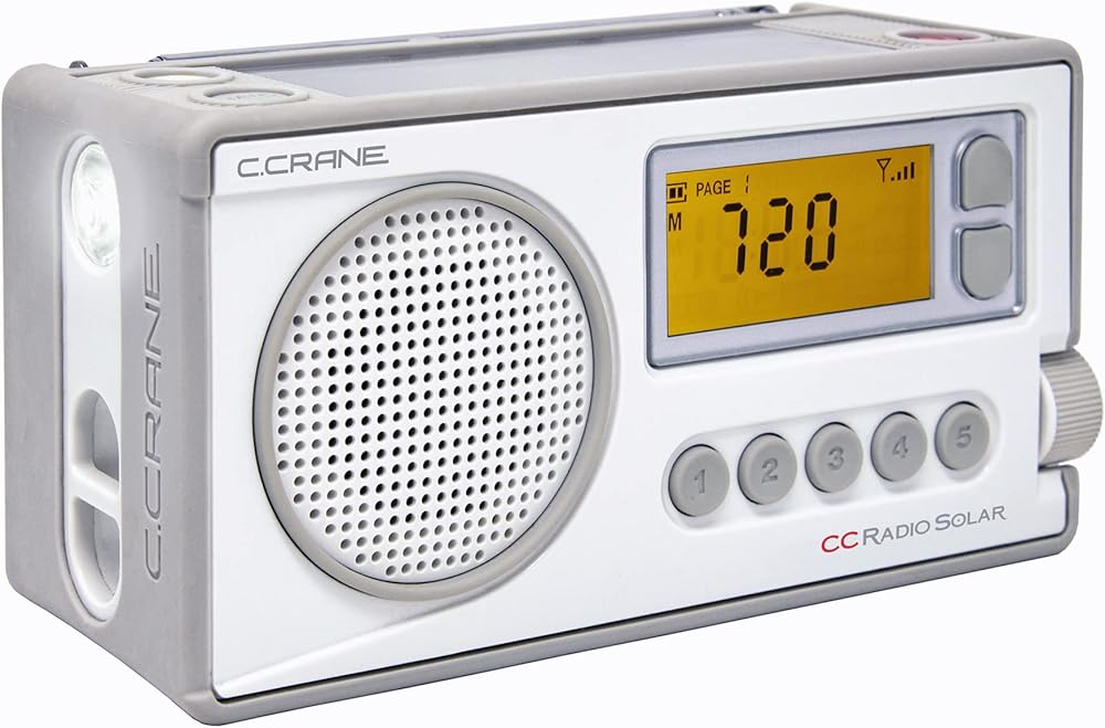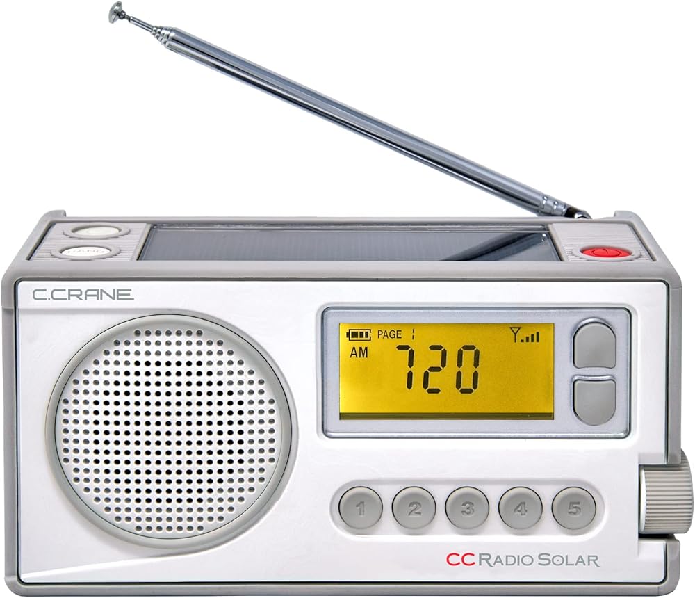 The CCRadio Solar is a small digital portable radio that has all the features anyone would want in an emergency radio and more. It stays charged placed in a sunny window and the oversized solar panel means you may not need a power assist for years. Audio is a surprise; it's accurate, pleasing and has two modes. A miser mode to conserve battery power in a true emergency and a high-power mode for an even better audio experience. Reception is really good for the size. The almost brick size depth and unique UV resistant rubber perimeter is concave on the bottom which makes it inherently stable. The flashlight is above average in brightness and color because of the selected high-quality LED. It has a glow in the dark flashlight button to make it easy to find in the dark. The hand crank folded and inlaid in the back is the only visible clue that it's a durable emergency radio. The included lithium-ion battery can be recharged by wind-up, solar panel, your USB port, or optional AC power adapter (not included). When the lithium-ion battery is fully charged, the radio will run more than 50 hours or charge your phone from the approximately 50% level to 100% level. It can also be powered by (3) “AA” alkaline batteries (not included) for approximately 50 hours in low power mode or 35 hours in high power mode. Additional features include: Five memory Presets per band, lighted display, micro-USB input charging port, line-in jack, headphone jack, clock, alarm, sleep timer (120, 90, 60, 30, & 15 minutes), 1, 9, and 10kHz tuning. Weight: 1.1 lbs. Size: 6" W x 3" H x 2.25" D. 1 Year limited warranty. U.S. Based tech support. Perfect for the kitchen, gardening, camping, hiking and of course, emergencies. Plan to hide this radio if you don't want your loved ones absconding with it. We've read review after review of people purchasing one as a gift and then having to buy one for themselves because they love it so much.