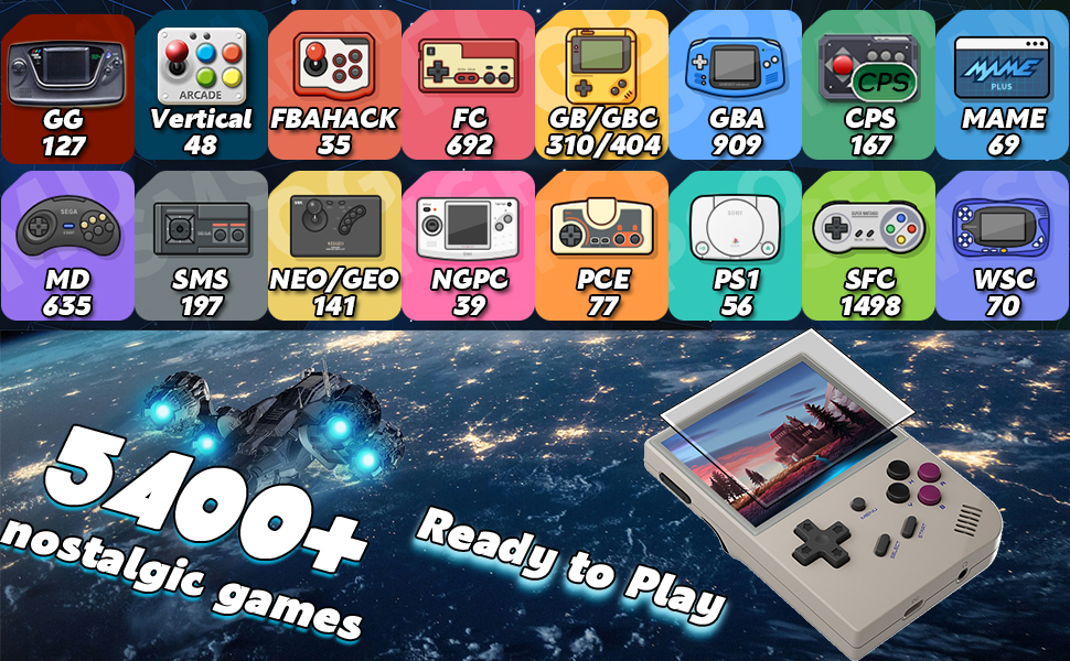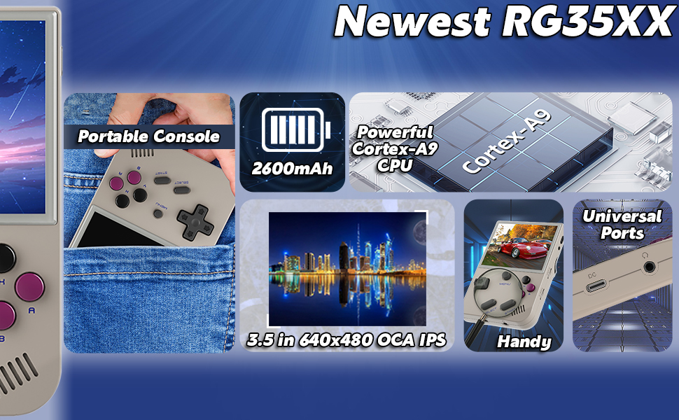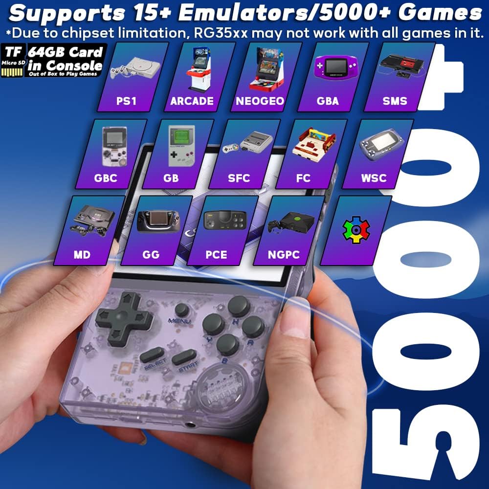 🎮5000+ ألعاب كلاسيكية مختارة: تدعم وحدة التحكم في الألعاب RG35XX العشرات من المحاكيات التي تغطي العديد من أنواع الألعاب، مثل المغامرة والحركة والسباقات وما إلى ذلك. وتعمل مع أكثر من 15 منصة محاكية.