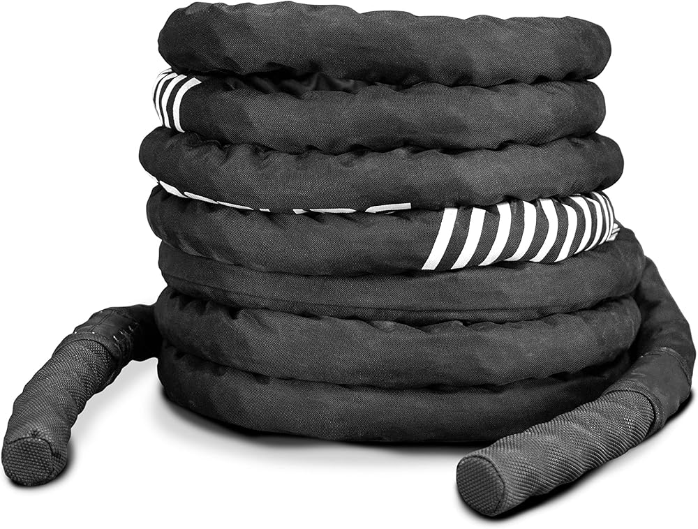 هيكل متين مع طبقة خارجية من كيفلار: حبال معركة مصممة للتمرين بقطر مقبض قوي 1.5 بوصة ومادة خارجية من كيفلار، تضمن حبال التمرين الخاصة بنا طول العمر والأداء العالي لصالة الألعاب الرياضية المنزلية الخاصة بك.