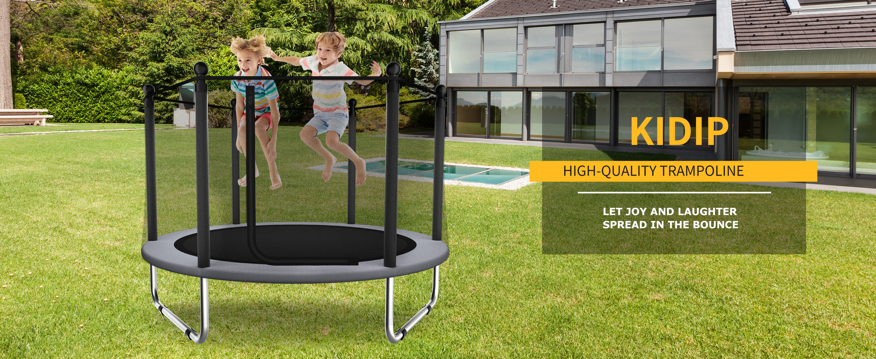 آمن وموثوق: يتميز ترامبولين KIDIP للأطفال بشبكة مهد مصممة خصيصًا للأطفال، مع تصميم مضاد للتصادمات لمنع الاصطدام بالأعمدة. الحبل المطاطي مرن للغاية، مما يقلل من خطر قرص الكاحل مقارنة بالزنبركات.