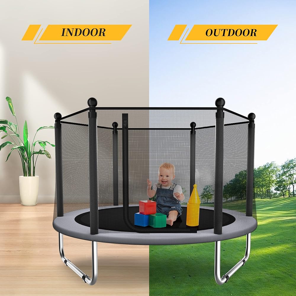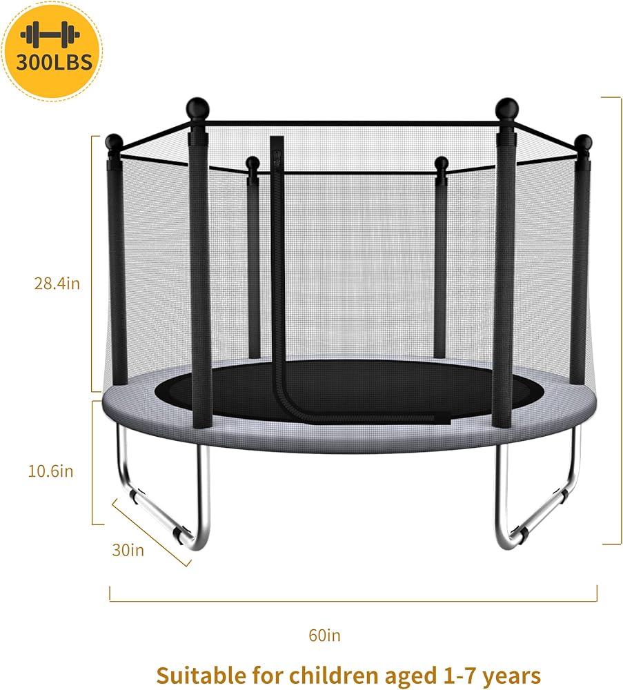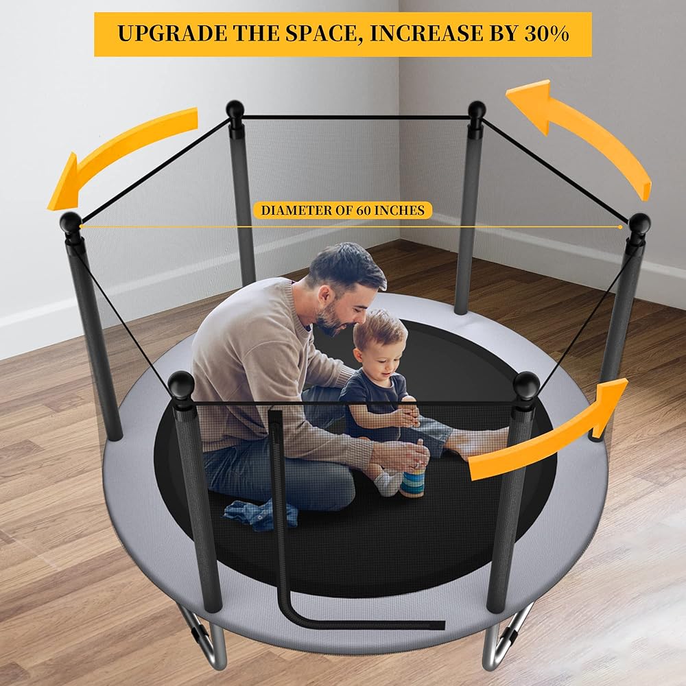 ترامبولين للأطفال - ترامبولين للأطفال في الأماكن المغلقة/الخارجية بطول 5 أقدام/ترامبولين للأطفال مع شبكة، ترامبولين دائري آمن صغير/للأطفال مع حاوية - هدية عيد ميلاد للأطفال