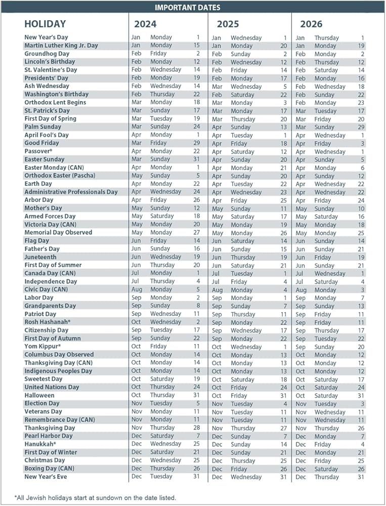 July 2024 - July 2026 featuring 24 months for easy planning; Includes a double-sided storage pocket