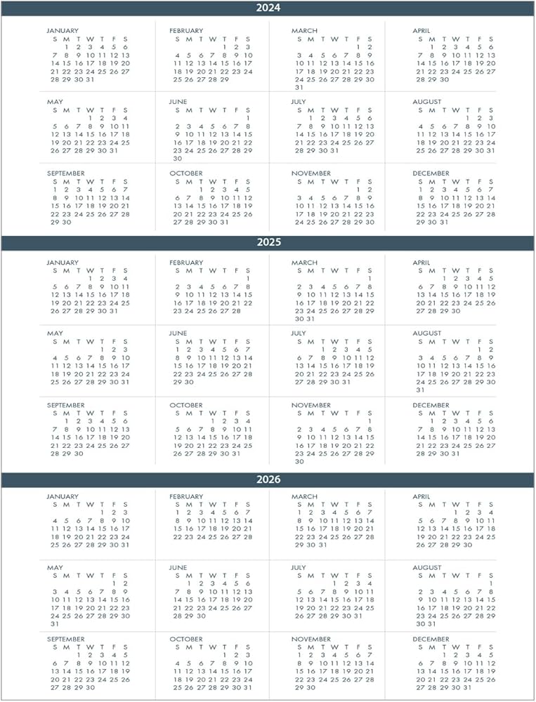 Previous and the following month reference calendar for optimal organization and three-year calendar reference page for long-range planning