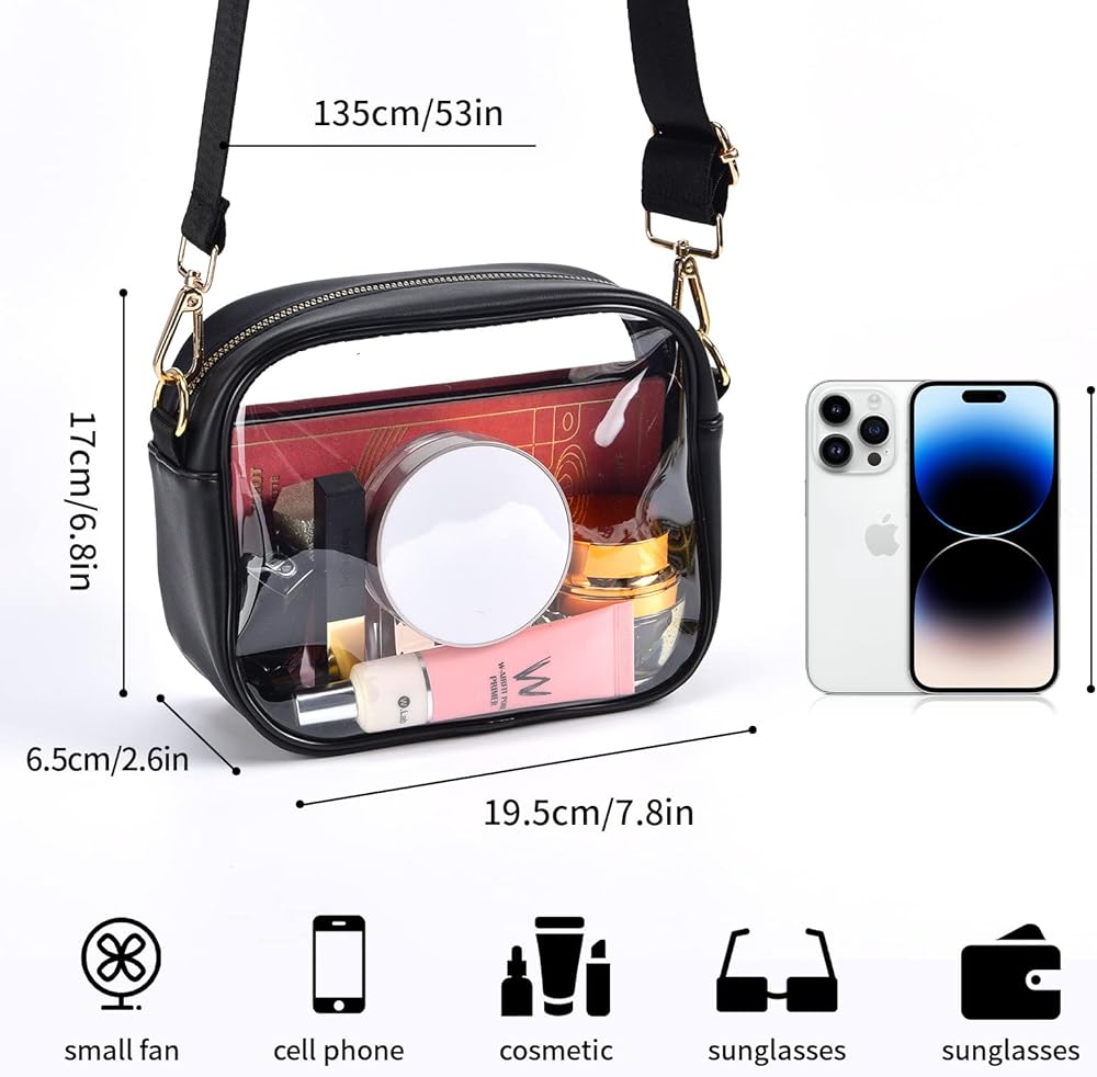 【تحصل على الأمان بسهولة】حقيبة كروس شفافة لدينا مع رؤية كاملة من جميع الجوانب، بما في ذلك الظهر. قم بالمرور عبر نقاط التفتيش بالحقيبة الشفافة لتجنب الرفض في المطار أو عند بوابة الملعب.