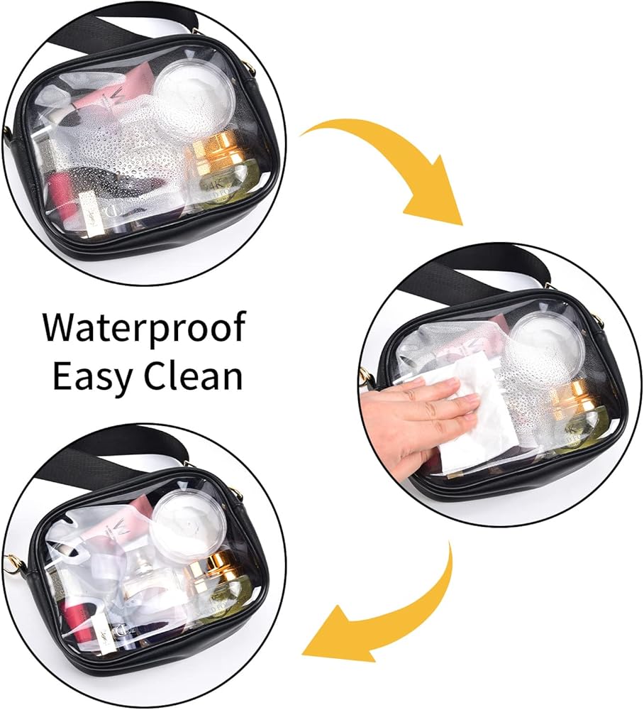 【حزام كتف قابل للإزالة】يمكن إزالة حقيبتنا الشفافة المزودة بحزام قابل للتعديل والحزام. عادة يمكن استخدامها كحقيبة كروس أو حقيبة كتف. ولكن عند إزالة حزام الكتف، تصبح حقيبة مكياج. عندما تحتاجين إلى ذلك. حقيبة مكياج لرحلة مؤقتة، يمكن استخدام الحقيبة الشفافة كبديل، لتوفير المال على حقيبة المكياج. حقيبة واحدة للاستخدامات المتعددة، لا تتردد في اختيار الاستخدام المفضل لديك.