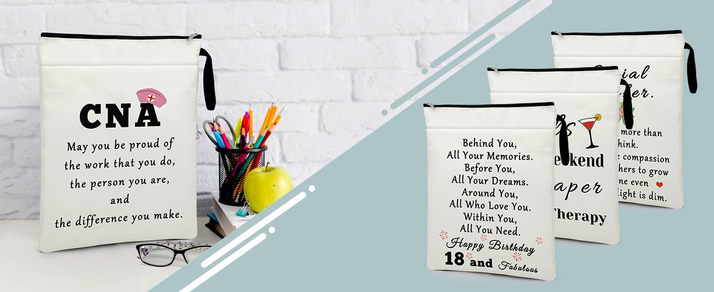أكياس الكتب للقراء: غلاف الكتاب مصنوع من مادة قماش أكسفورد عالية الجودة، وهي مقاومة للأوساخ وسهلة التنظيف. صناعة متقنة، سحاب قوي، طباعة على الوجهين بصور عالية الجودة. يبلغ مقاس غلاف الكتاب تقريبًا 11.54 بوصة × 9 بوصة (22.9 سم × 29.3 سم) وهو مصمم لحماية معظم الكتب.