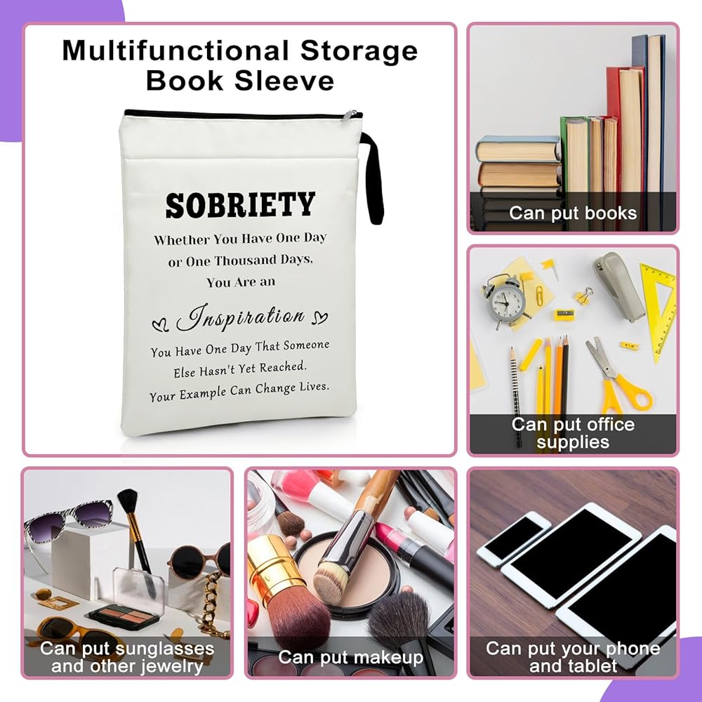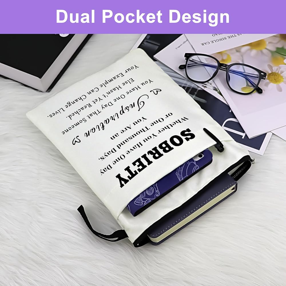 هدايا الرصانة غلاف الكتاب غلاف الكتاب القراء هدايا التعافي من الإدمان حقيبة حامي الكتاب للأغلفة الورقية هدايا AA الرصانة للنساء محبي الكتب قارئ دودة الكتب هدايا عيد الميلاد
