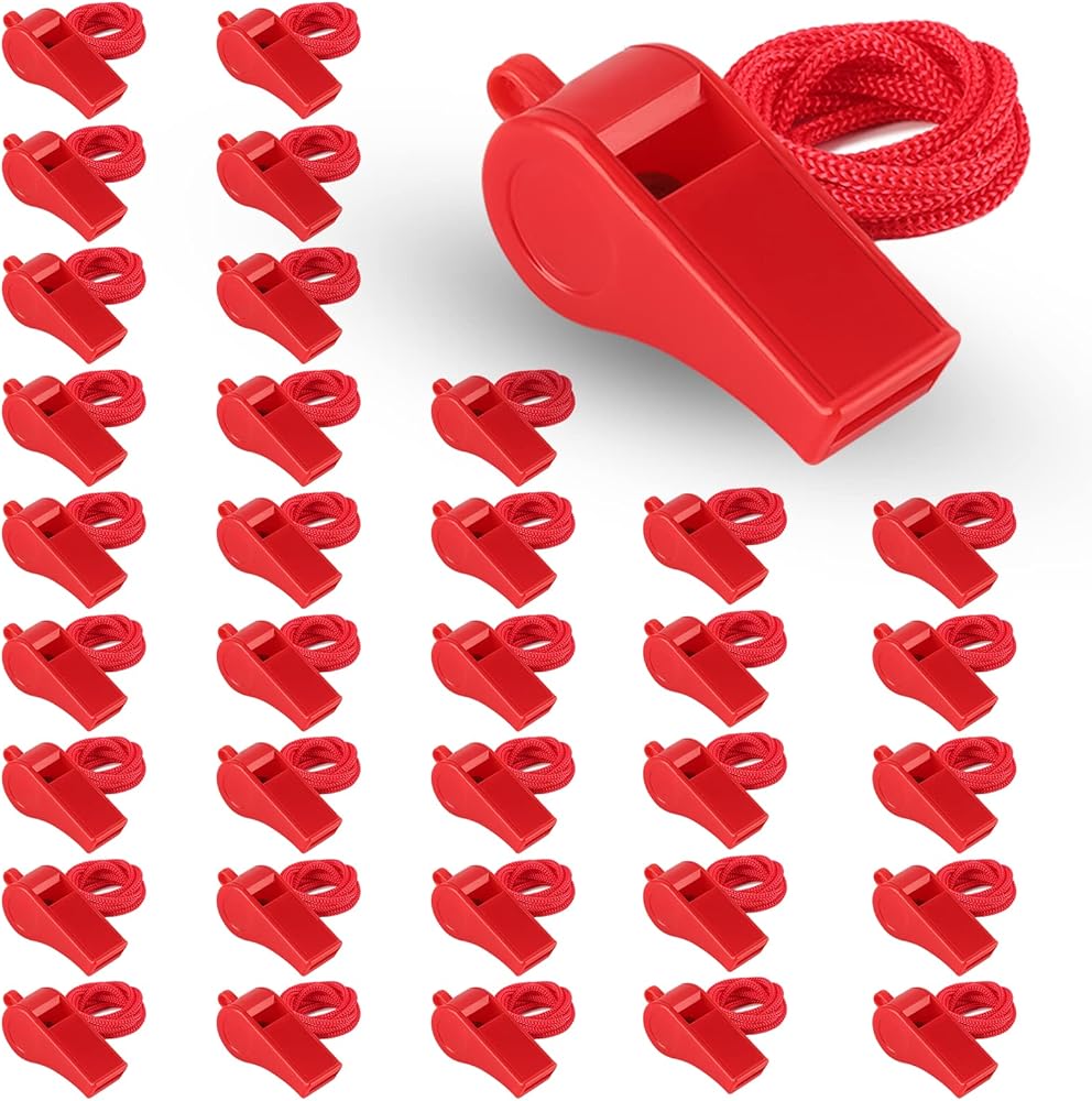 OBKJJ THICKENED PLASTIC WHISTLES WITH LANYARDS FOR COACHES, SET OF 48 – Creat Loud and crisp sound that can be heard clearly even in great distance.