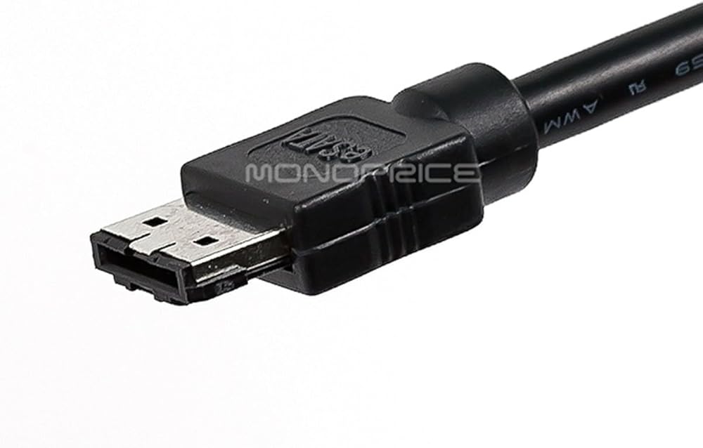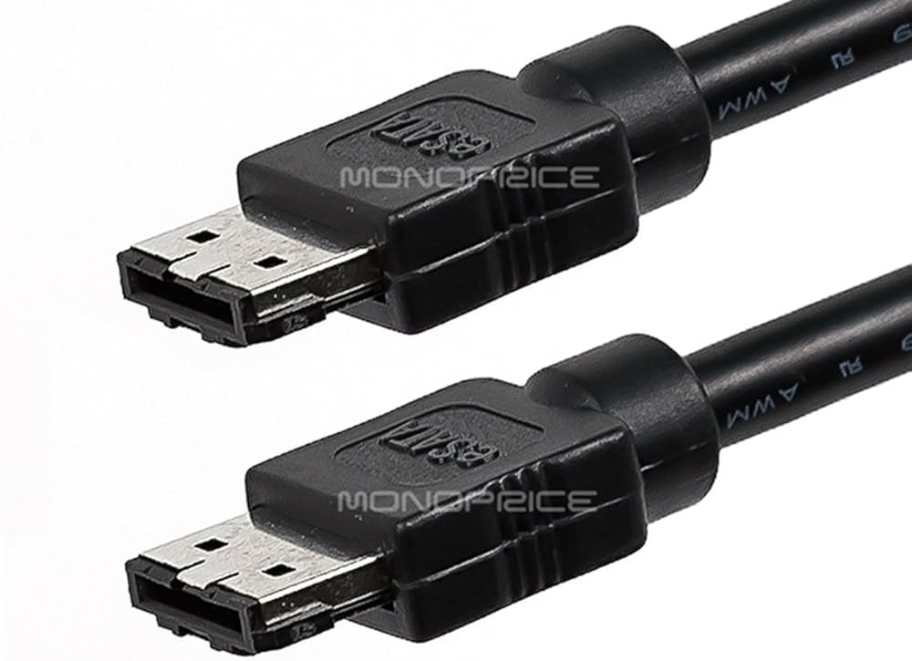Each end is terminated in an eSATA connector for use with external SATA devices and controller ports only.