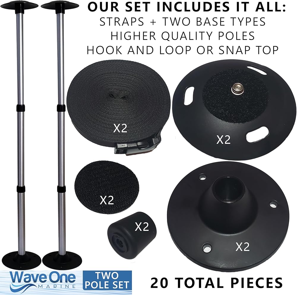 الأشرطة متضمنة: على عكس المنتجات الأخرى، تشتمل مجموعات الأقطاب لدينا على شريطين بطول 65 قدمًا لتحسين ثبات الجزء العلوي من العمود وإبقائه في وضع مستقيم أثناء وضع الغطاء أو مع رياح الشتاء العالية. استخدمها متعددة للقوارب العائمة الكبيرة أو قوارب القوس أو أغطية القوارب.