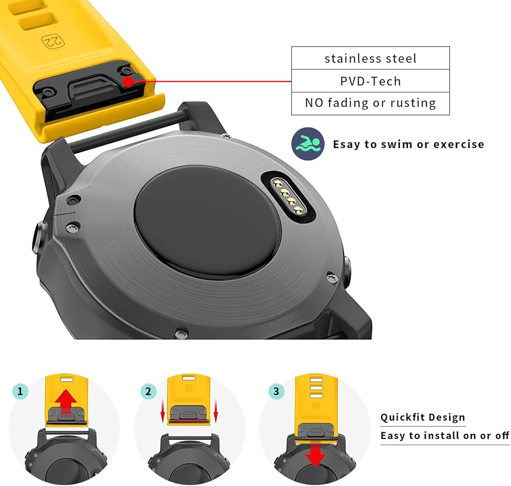 [النماذج المتوافقة] تناسب فقط: Fenix 5/5Plus، Fenix 6/6Pro، Fenix 7، Forerunner 935/Forerunner 945، Instinct/Instinct 2/Instinct Esports، Approach S60/Approach S62، Epix/Epix 2، MARQ، Quatix 5 ، لائق G1. يرجى التحقق من الطراز الخاص بك على الجزء الخلفي من الساعة قبل الشراء.
