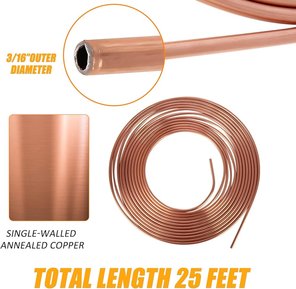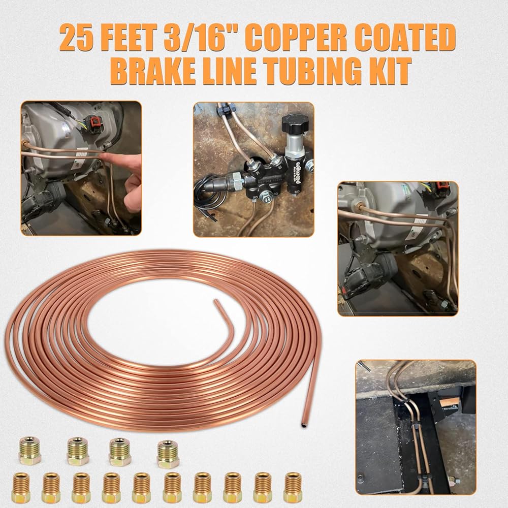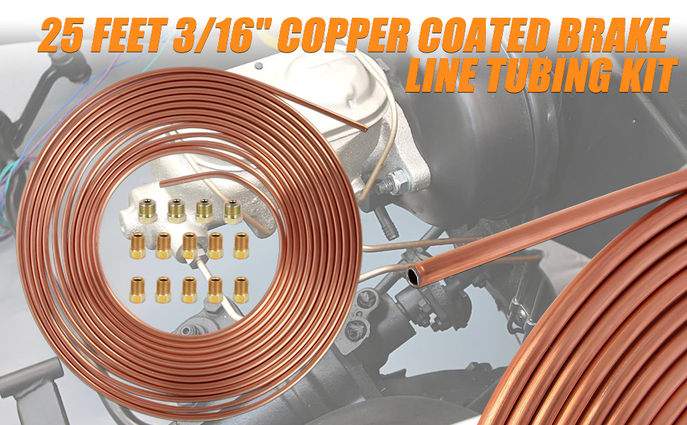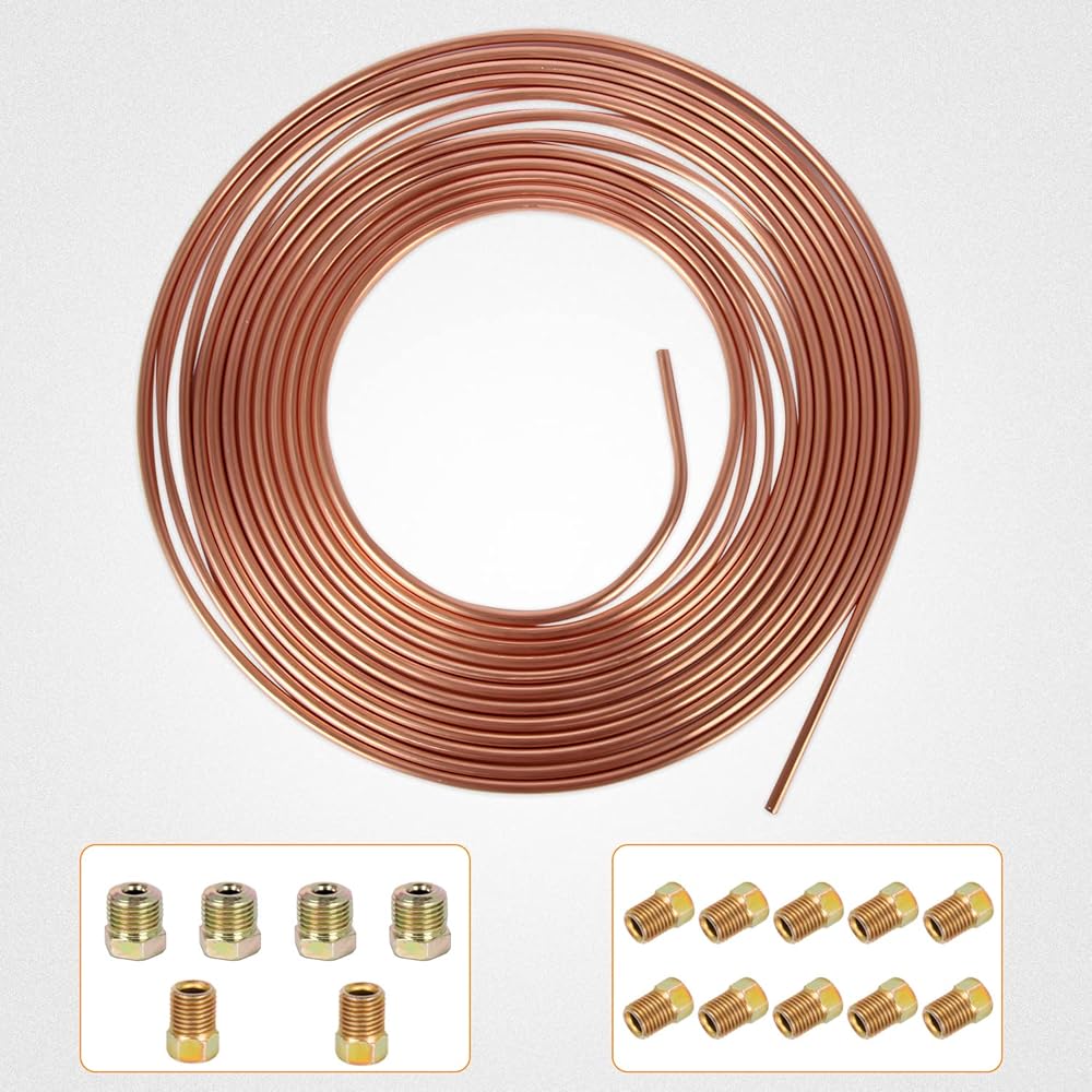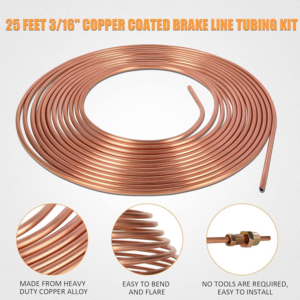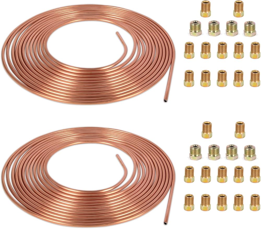 النوع: 2 عبوة 25 قدم 3/16 بوصة مجموعة أنابيب خط الفرامل المطلية بالنحاس المتوافقة مع أنظمة نقل الحركة والفرامل الهيدروليكية والوقود.