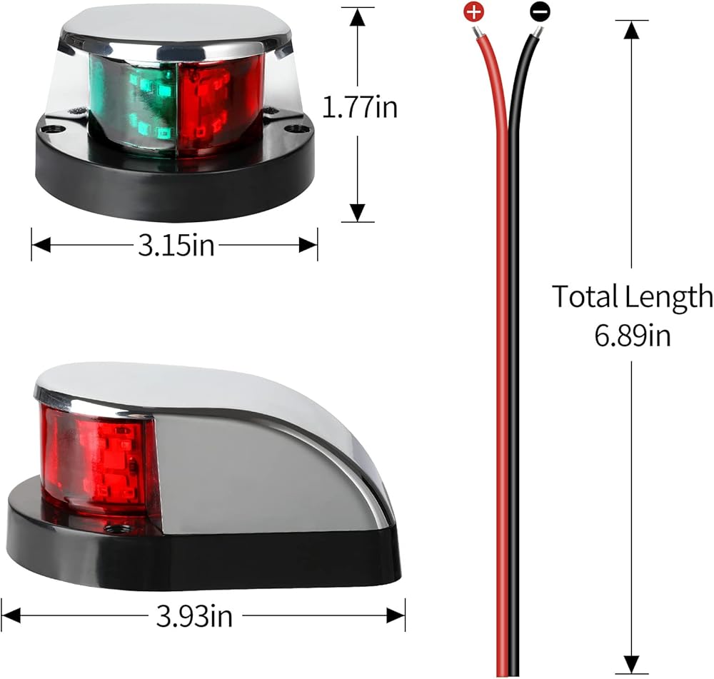 HIGH CORROSION RESISTANCE: The chrome-plated housing of the boat navigation light has excellent performance against seawater corrosion and UV rays.