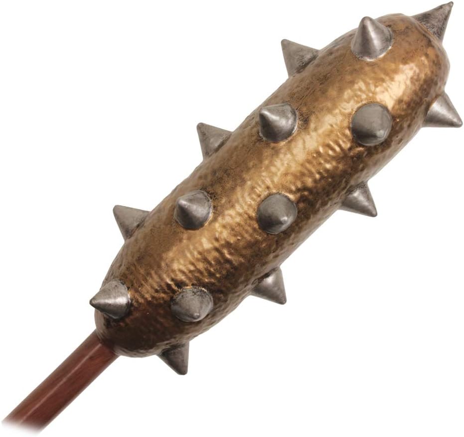 34 inches overall latex rubber larping Latex Rubber Foam Larping Club w/ Spiked Mace, The foam mace has a fiber glass cord inside. The mace body is soft, but spike is pointed. Outside of blade use latex as skin. handle wrapped black cloth.