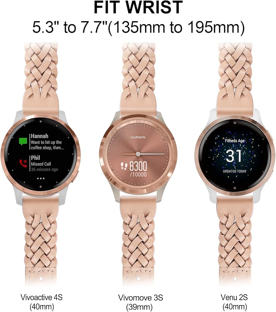 التطبيق: مصمم خصيصًا لـ Garmin Vivoactive 4S 40mm / Venu 2S 40mm / Venu 3S 41mm / Vivomove 3S / Forerunner 265S، كما أنه مناسب أيضًا لـ Fossil Women's Gen 6 42mm / Women's Gen 5E 42mm / Women's Charter HR / Stella Gen 6 Hybrid / Carlie Gen 6 هجين / سيدات من الجيل الرابع Venture HR. (ليس لـ VIVOACTIVE 4 45MM / VENU 2 45MM / VIVOMOVE 3!!!)