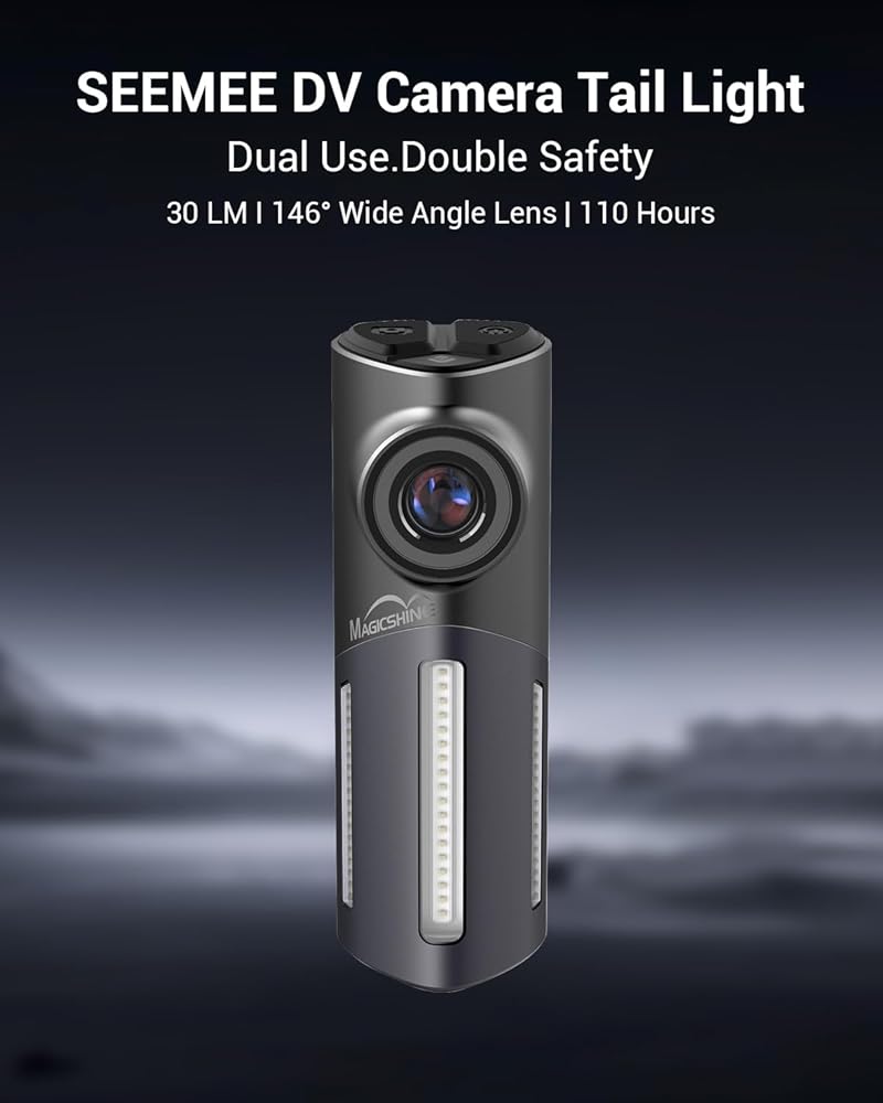 Magicshine SEEMEE DV ضوء خلفي للكاميرا، 1080P 146 درجة | USB-C قابل للشحن | بطارية 3400 مللي أمبير في الساعة وقت تشغيل يصل إلى 110 ساعات | IPX6 مقاوم للماء من الألومنيوم للدراجة الخلفية لراكبي الدراجات على الطرق الحضرية