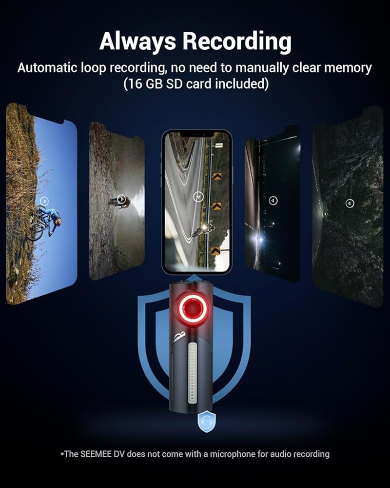 التسجيل بدقة 1080 بكسل مع عدسة بزاوية واسعة 146 درجة: شاهد وسجل ما خلفك باستخدام كاميرا مدمجة تلتقط كل التفاصيل بدقة 1080 بكسل/30 إطارًا في الثانية. لوحات ترخيص مذهلة في قوس من اللقطات بزاوية 146 درجة. ستلتقط كل ما يحدث خلف دراجتك بتفاصيل رائعة. تعرض شاشة الهاتف الخلوي المشهد هو المسافة الفعلية، ولن يكون هناك أي تشوه. (جاهز للاستخدام بمجرد إخراجه من الصندوق مع بطاقة SD متضمنة سعة 16 جيجابايت.)