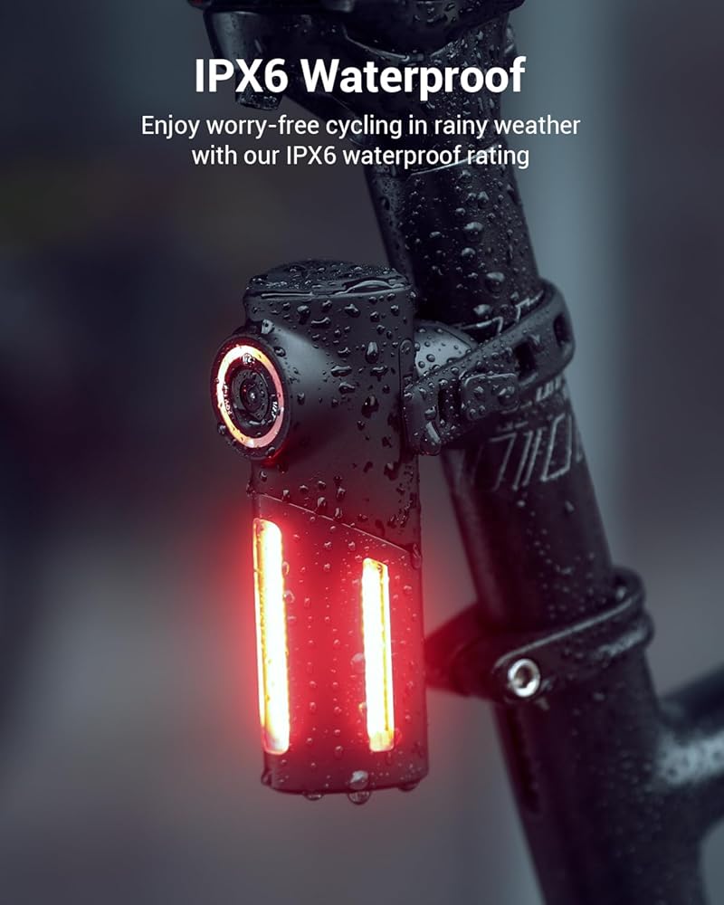4 أوضاع إضاءة: يمكنك تبديل الضوء الأحمر LED الساطع: فلاش منخفض عالي الجودة مما يجعله أكثر أمانًا للركوب ليلاً. في وضع ECO FLASH، يمكن تشغيل بطارية الليثيوم بقدرة 3400 مللي أمبير في الساعة لمدة 110 ساعة متواصلة. (يتم تحديد وقت التشغيل من خلال أوضاع التجويف وتشغيل/إيقاف تشغيل الكاميرا. راجع دليل المستخدم للحصول على التفاصيل.)