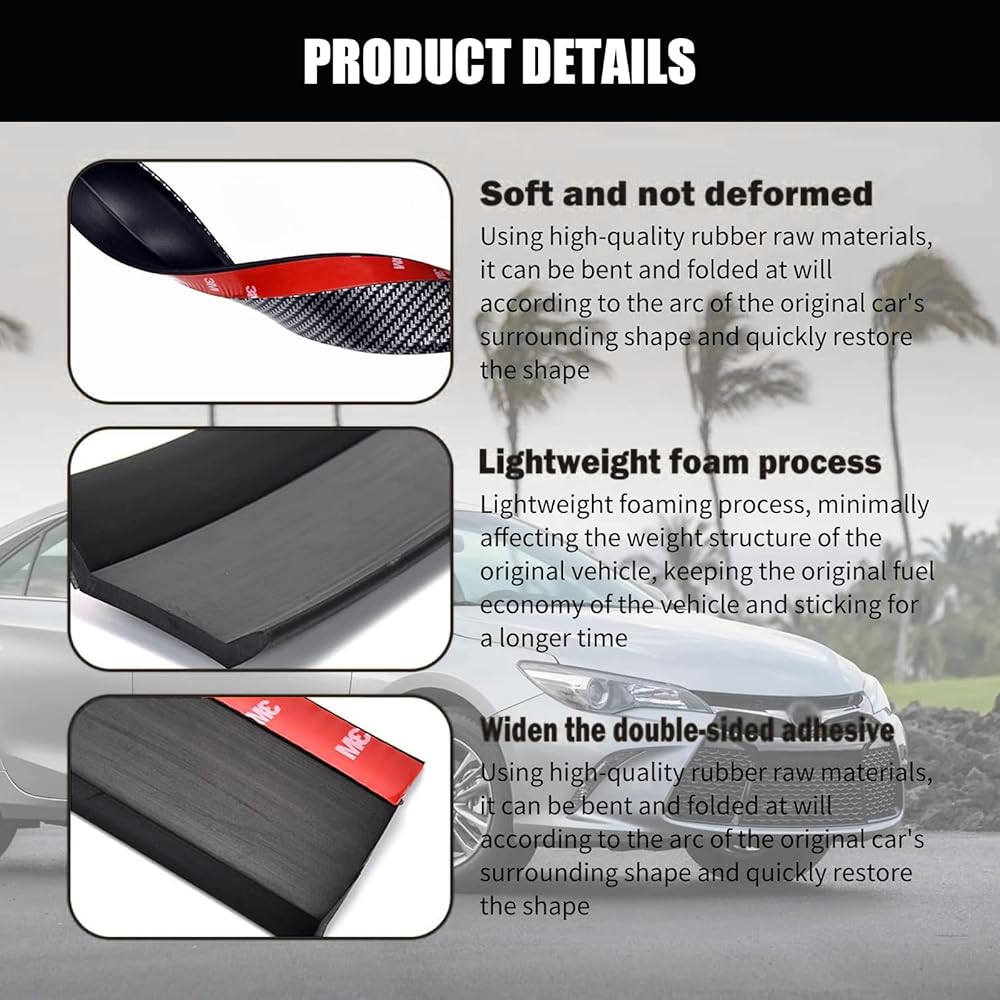 • Decorative Effect: Increase the streamline of car appearance by installing a rear roof lip spoiler guard skirt, making your car look cooler and more stylish. Protect from scrapes from driveways, speed bumps and curbs. Protect cars from collision and alleviate the damage.