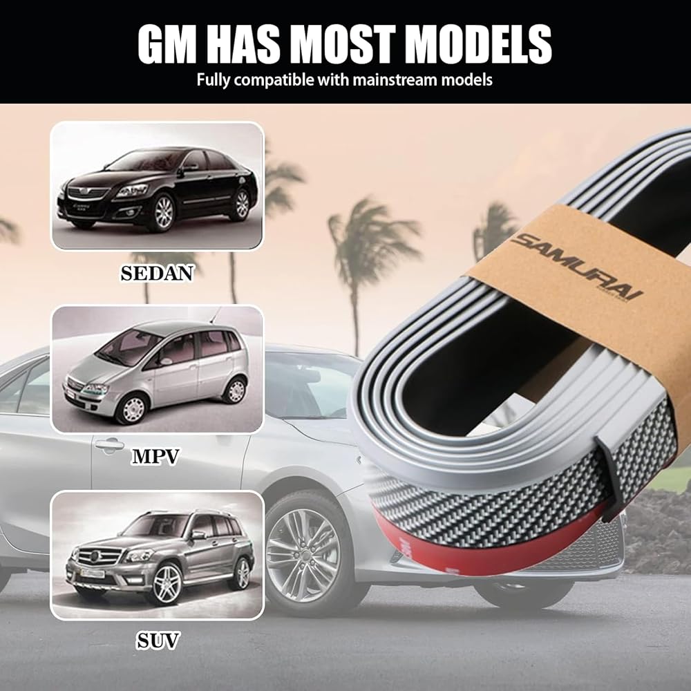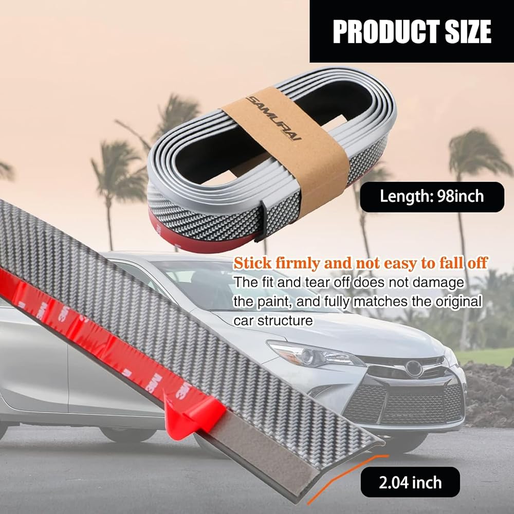 • Universal Fit: Long 250cm/8.2 feet, DIY car front lip fearturing in curved design, slim, can be stick on front or rear bumper, body kit, side skirt, universal for most cars. No matter where it is installed, it can decorate your car and make your car look unique.
