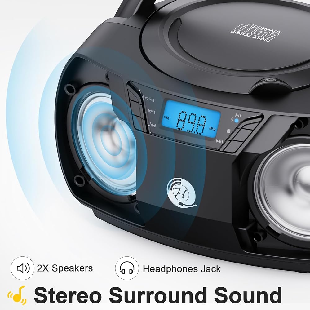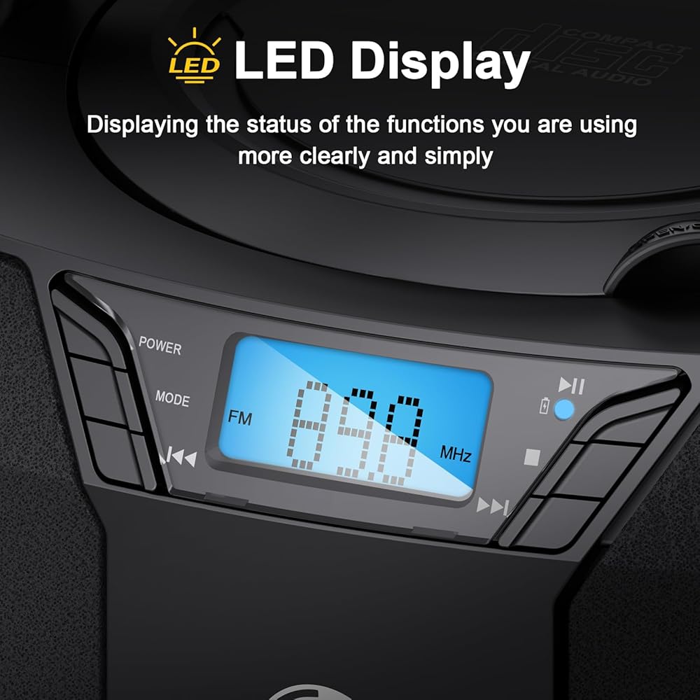 توافق متعدد الاستخدامات مع الأقراص المضغوطة: يوفر جهاز boombox الخاص بنا توافقًا واسعًا مع مجموعة متنوعة من تنسيقات الأقراص المضغوطة، والتي تشمل الأقراص المضغوطة القياسية، وأقراص CD-R/RW، وأقراص MP3 المضغوطة، وحتى أقراص الكتب الصوتية المضغوطة. وهذا يضمن وجود مجموعة متنوعة من المحتوى الصوتي في متناول يدك.