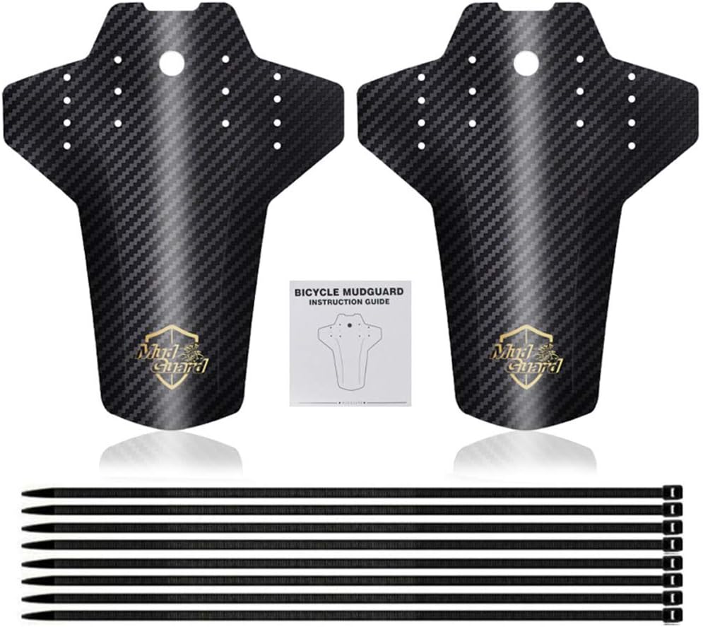 نسيج ألياف الكربون: واقي الطين mtb مصنوع من بلاستيك هندسي عالي الجودة بنمط ألياف الكربون ثلاثي الأبعاد. المواد البلاستيكية الهندسية PP غير السامة خفيفة للغاية ومتينة ولا تتشوه بسهولة ويمكن طيها عدة مرات.