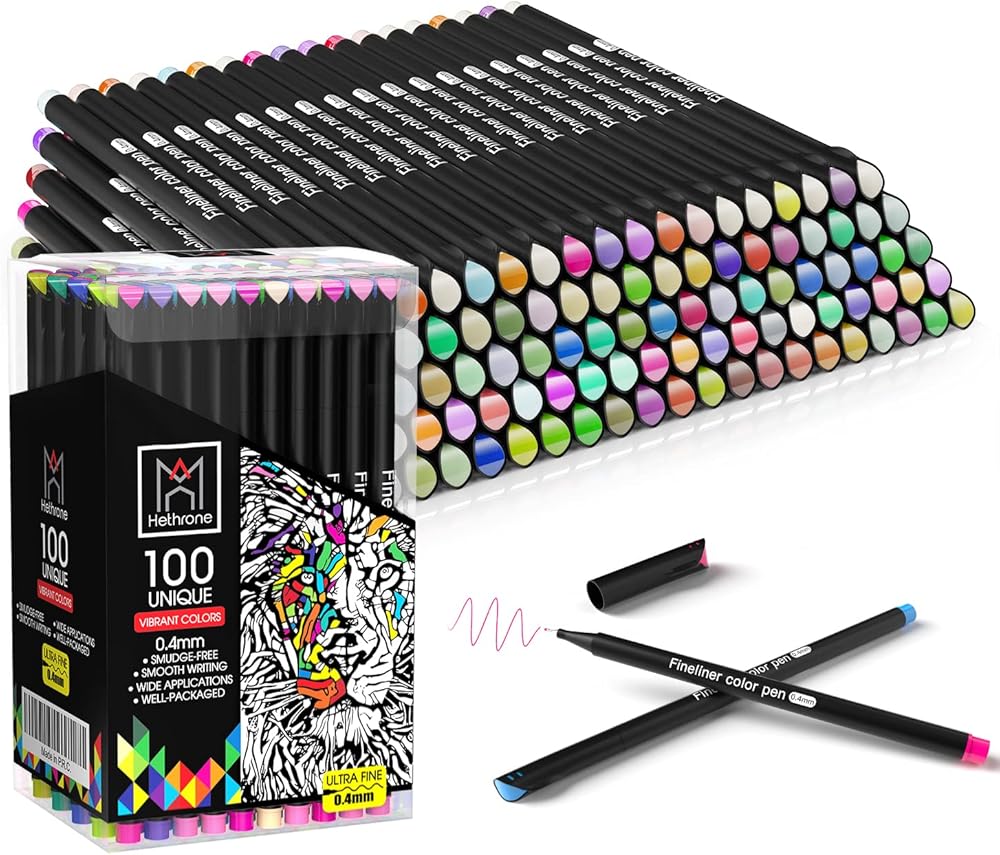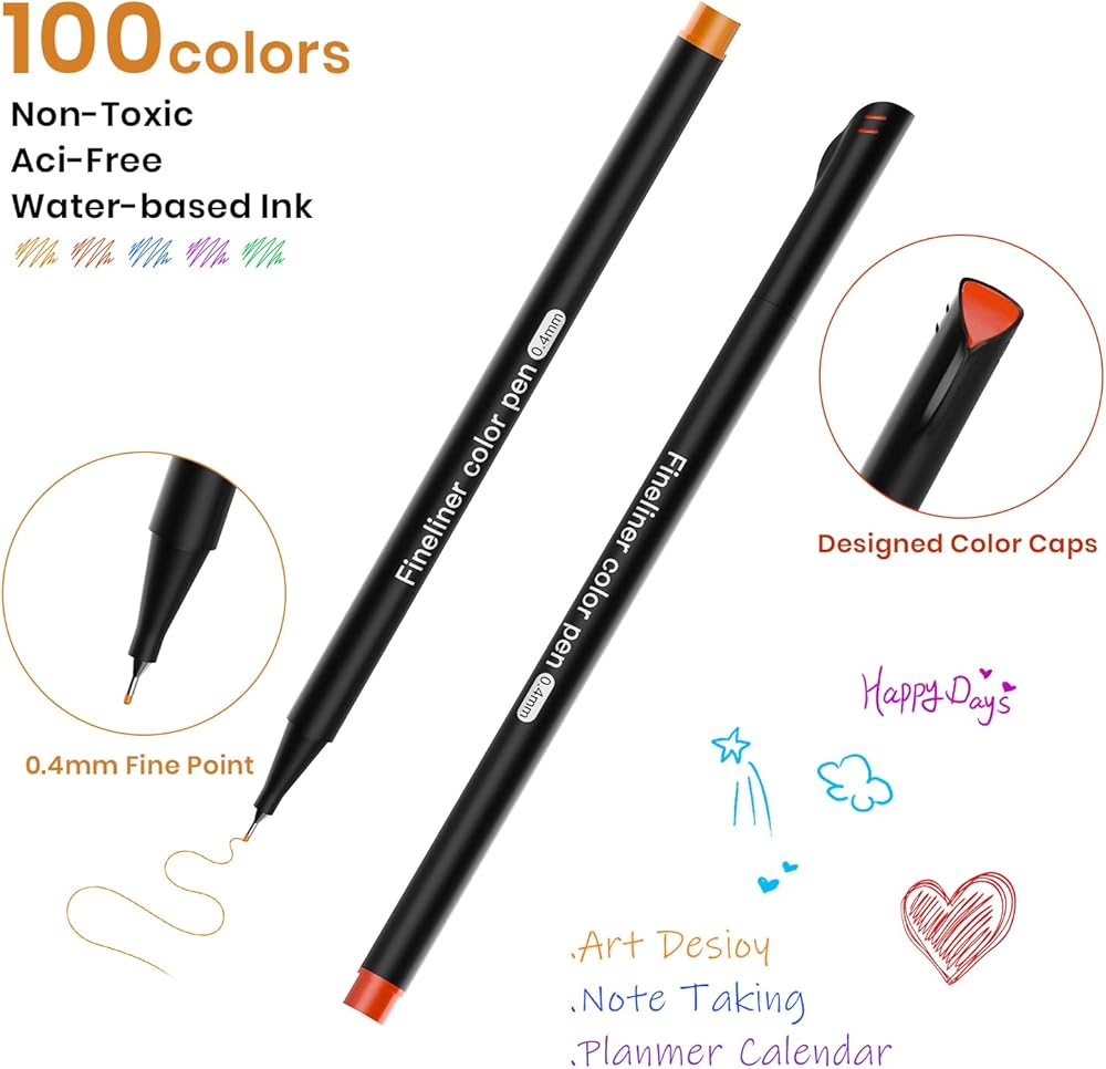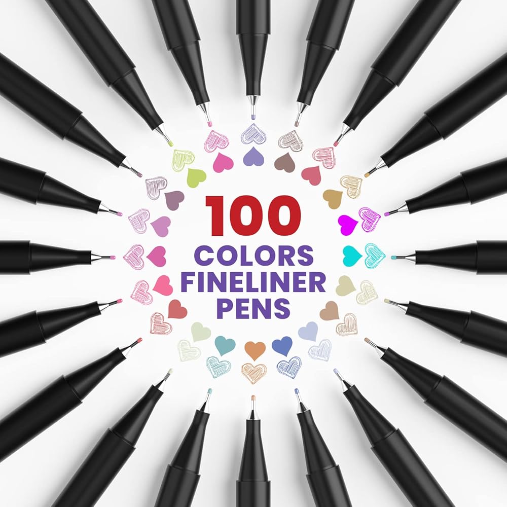 أقلام فاينلاينر 100 لون - 100 لون فريد يمكن أن تلبي احتياجاتك المختلفة. الألوان كلها نابضة بالحياة ومشرقة، دون أي تكرار.