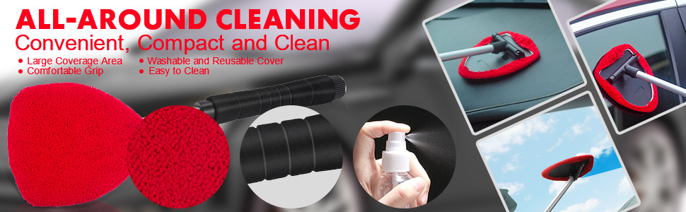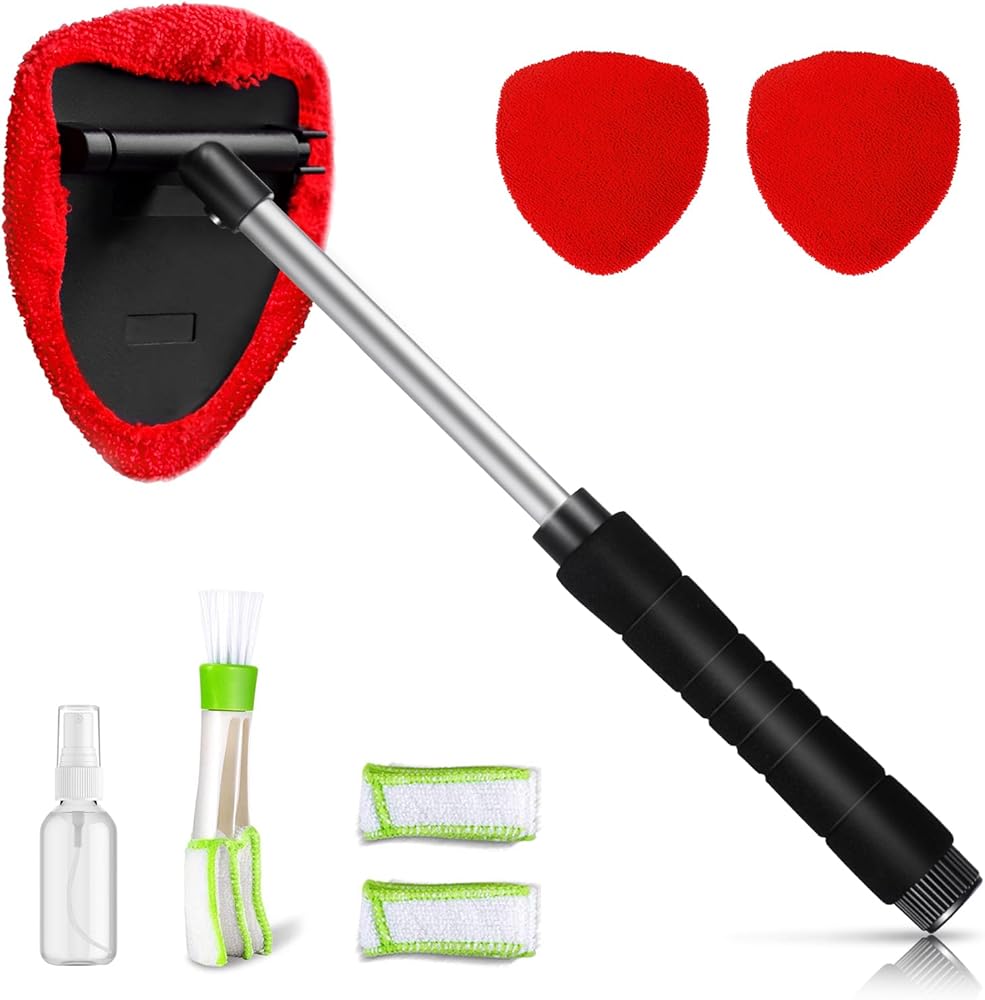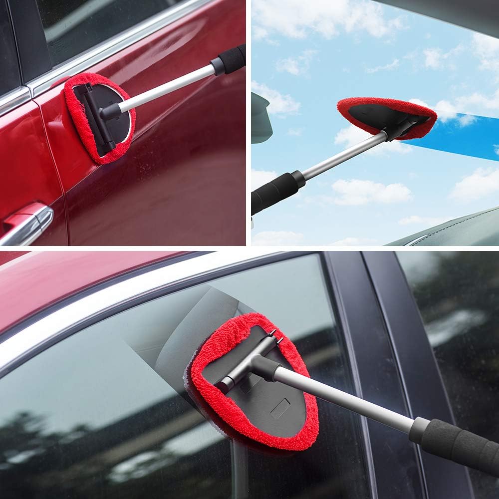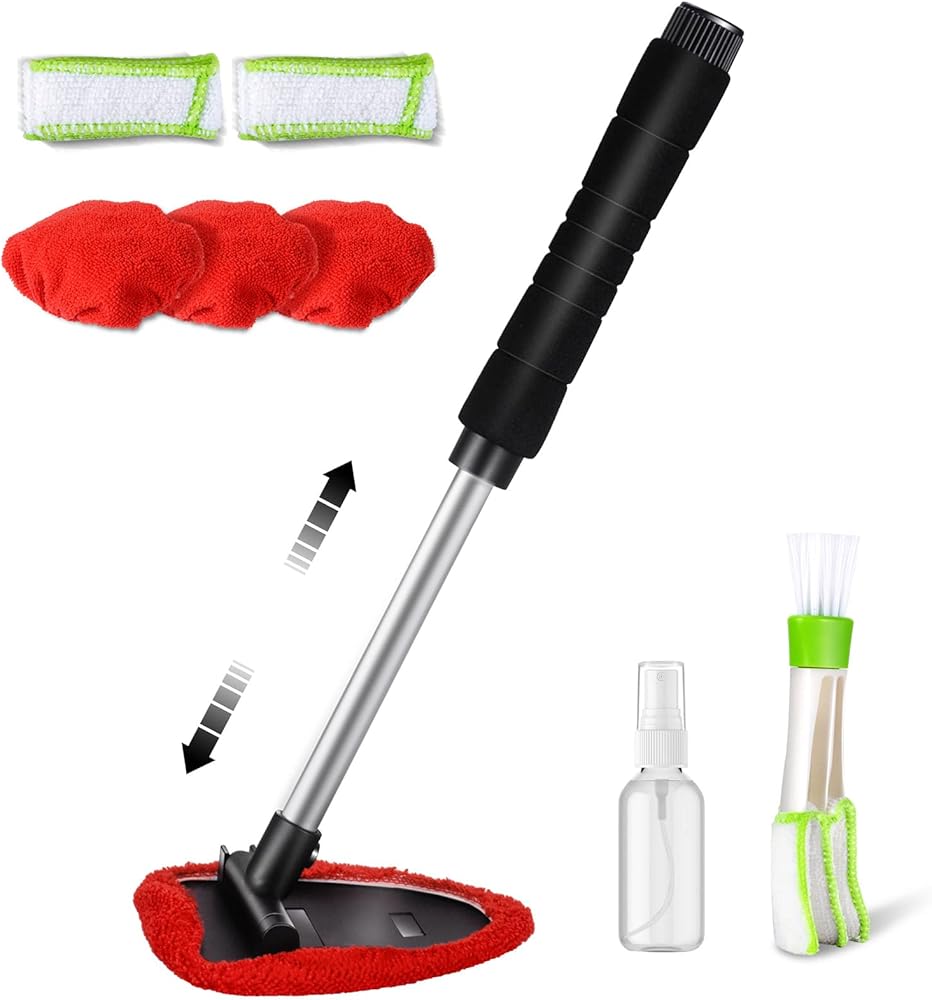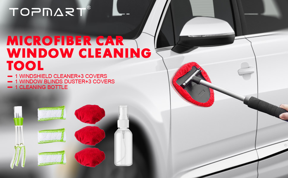 منظف الزجاج الأمامي من توب مارت، أداة تنظيف الزجاج الأمامي بمقبض قابل للتمديد ومنفضة فتحات تهوية للجزء الخارجي للسيارة، طقم تنظيف زجاج السيارة مع قطعة قماش من الألياف الدقيقة قابلة للغسل وقابلة لإعادة الاستخدام