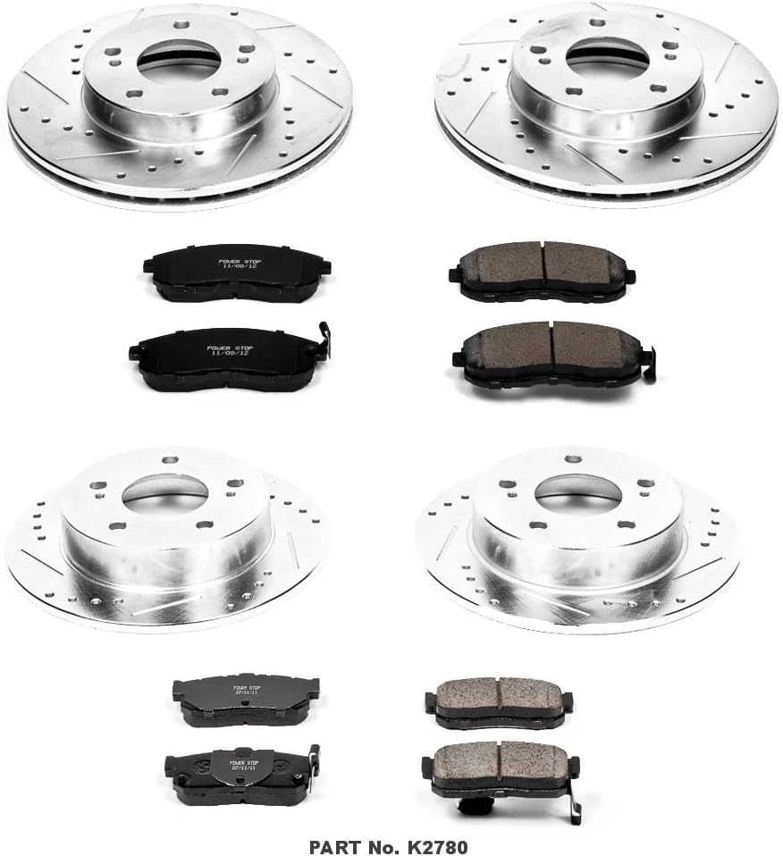 Power Stop Z23 Evolution Sport Brake Upgrade Kit makes it simple to increase the braking power of your daily-driver. This Power Stop kit is engineered to provide a low dust & noise-free upgrade over your stock brake system. The Power Stop Z23 brake upgrade kit makes it simple to complete your brake job by including everything you need: perfectly matched drilled & slotted rotors, Z23 Evolution Sport carbon-fiber ceramic brake pads, upgraded hardware, and high performance lubricant. The low-dust ceramic formula brake pads are reinforced with carbon fibers to strengthen the compound. They are dust free, noise-free, and give you increased braking power without sacrificing everyday drivability. The rotors are cast using the finest G3000 metallurgy with strict OE tolerances - making them a perfect, bolt-on upgrade without the need to make any modifications. Precision drill holes allow for maximum rotor cooling. This keeps your brakes temperatures down during extreme operating conditions. Rounded slots help wipe away any gas or debris - keeping a clear contact patch on the rotor surface for safe, smooth braking. Silver Zinc Dichromate plating is applied to all drilled & slotted rotors, they not only look great behind your wheels, but to help prevent rust & corrosion. Get your Power Stop's Z23 Evolution Sport brake kit and enjoy better, noise-free braking without that nasty brake dust!
