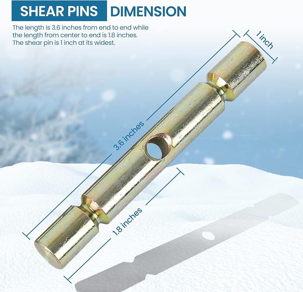 الأبعاد المصممة بدقة: مصممة لدبابيس ربط محراث الثلج ATV، توفر دبابيس القص مقاس 3.6 بوصة × 1 بوصة الطول والعرض الأمثل، بقياس 3.6 بوصة في الطول الإجمالي و1.8 بوصة من المركز إلى النهاية. يضمن عرض 1 بوصة عند أوسع نقطة ملاءمة آمنة لمحراثك.
