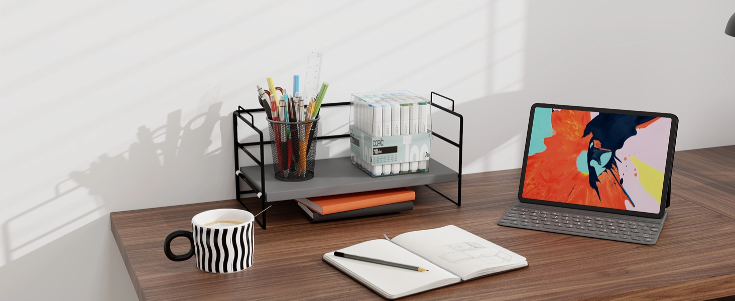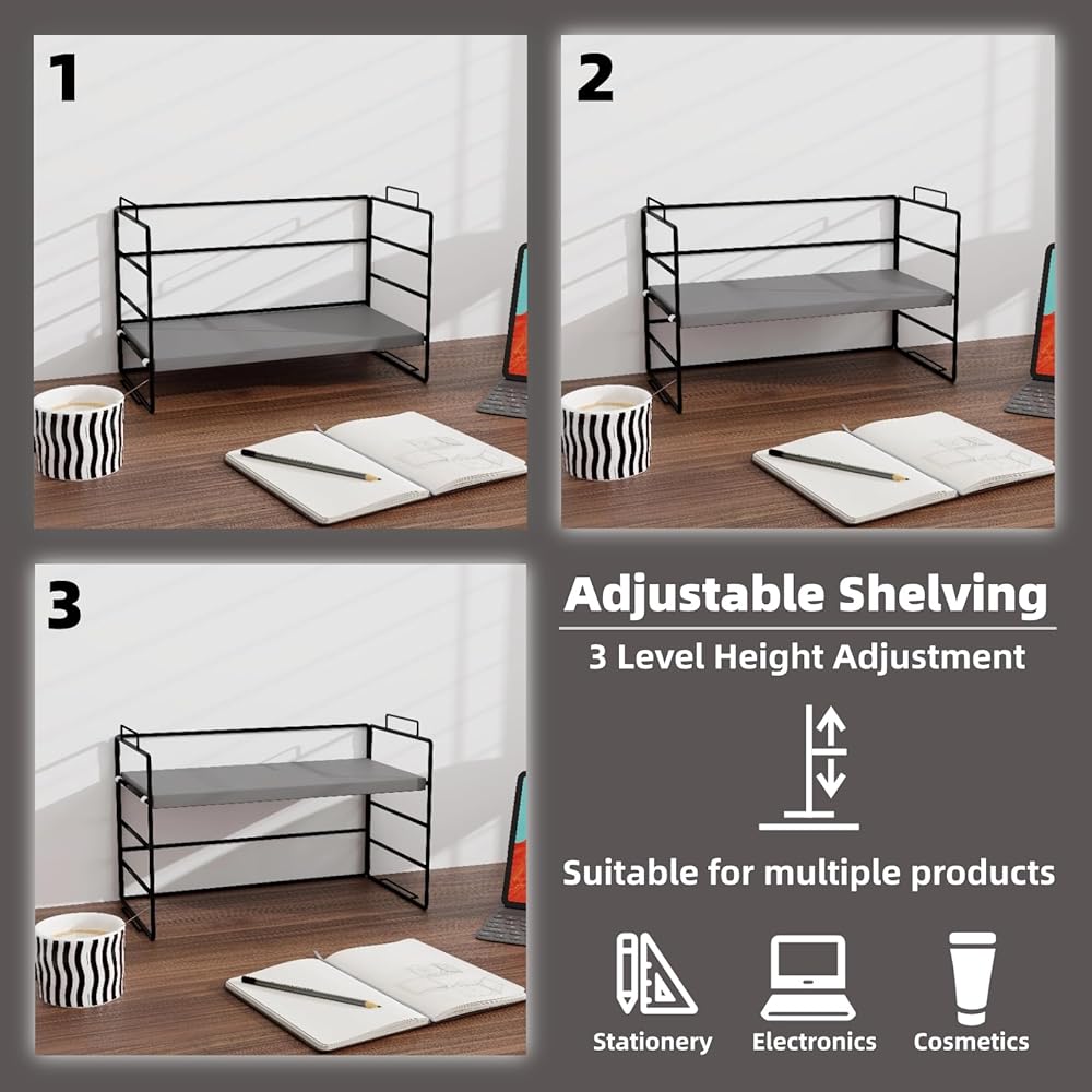 إطار معدني قوي - مصنوع من أجل المتانة، يتميز منظم الرف المكتبي من Growfessor بهيكل معدني قوي، مستعد لدعم مجموعة من العناصر بشكل ثابت من الكتب المدرسية الضخمة إلى النباتات المزخرفة، مما يعزز وظائف أي سطح مكتب.