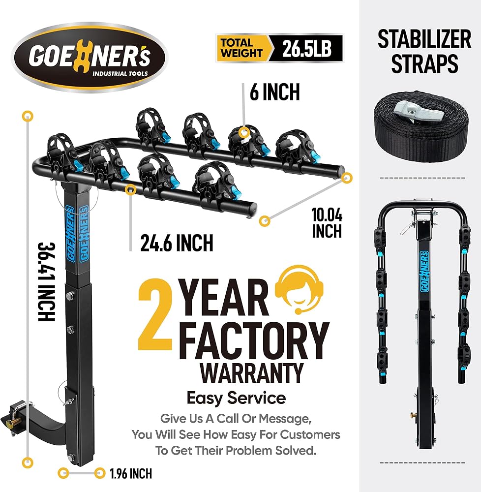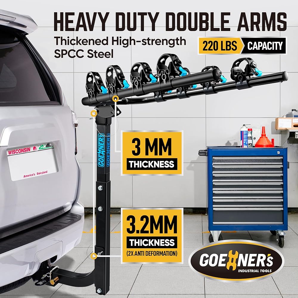 This hitch bike rack features SGS approved rubber straps, its damage resistant ability is twice the normal straps and 6,000 cycles is guaranteed.