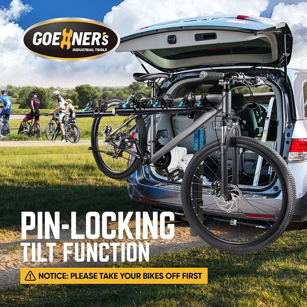 The pin-locking tilt function swings the rack down, so you can reach your gear in the back without removing the whole system (Notice: please take your bikes off first).