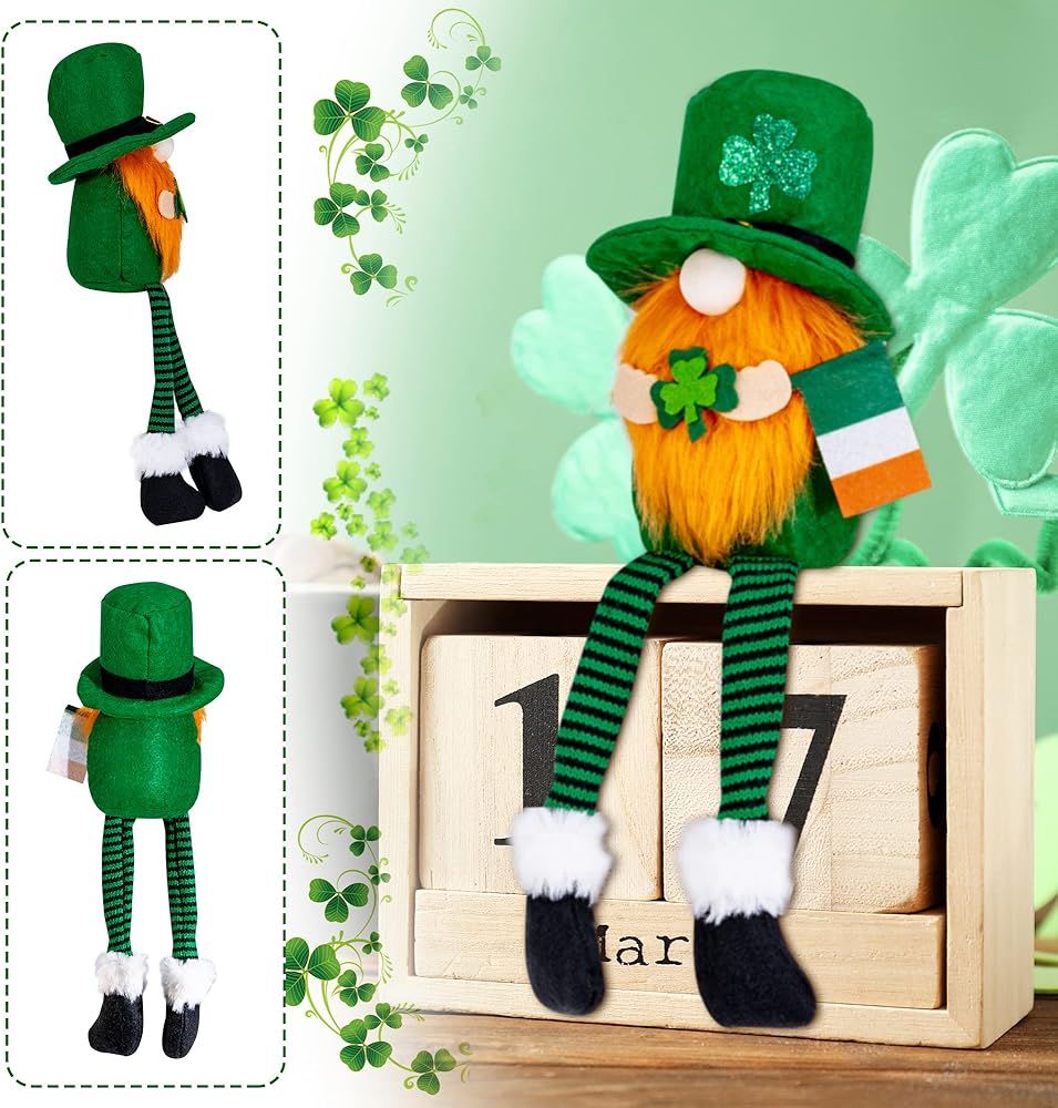 🎩 تصميم فريد من نوعه: قضم عيد القديس باتريك طويل الأرجل مع نمط نبات النفل وعلم أيرلندي، التصميم بدون وجه يجعل مظهره أكثر سلامًا وجذابًا.