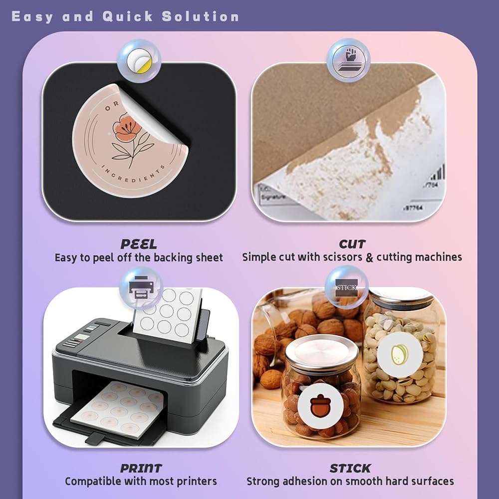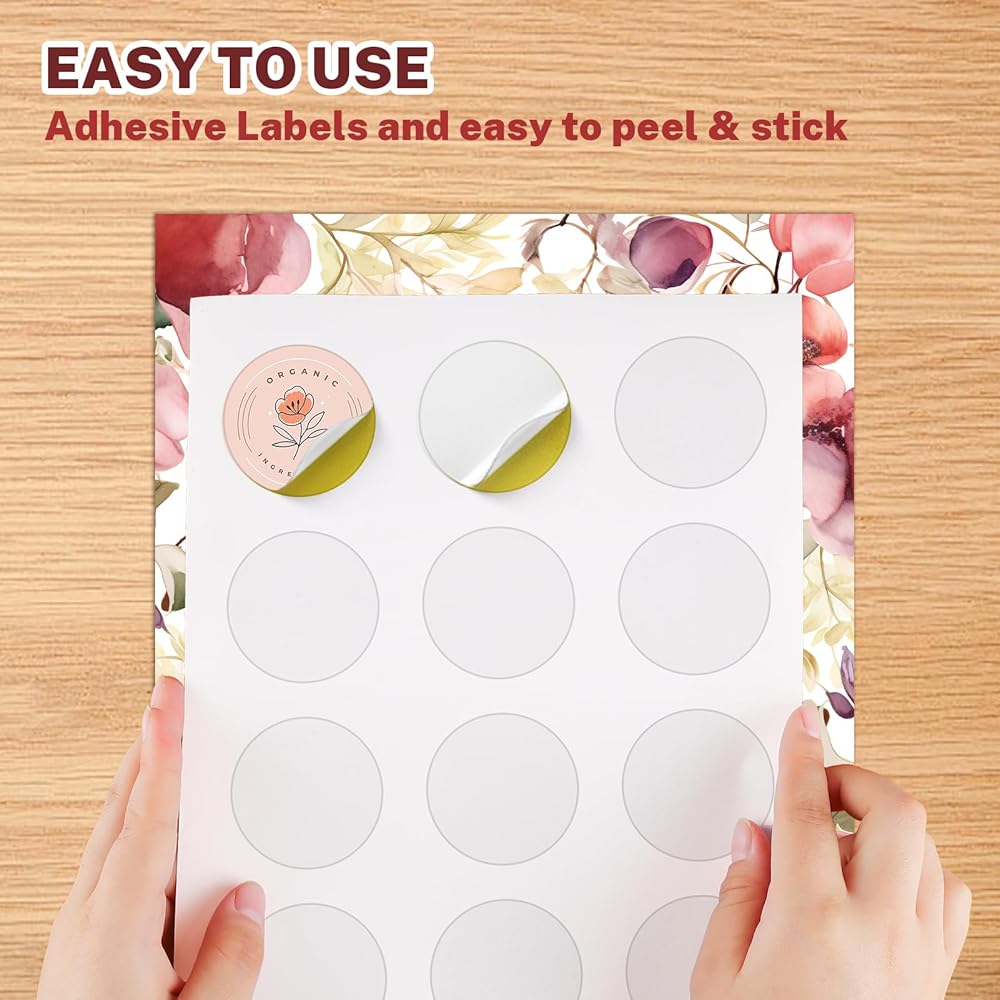 الحجم: قطر الملصقات الدائرية القابلة للطباعة هو 2 بوصة، مع 12 ملصقًا في كل صفحة، وحجم الورقة 8.5 بوصة × 11 بوصة، إجمالي 360 ملصقًا. الملصقات المستديرة مقاس 2 بوصة مقطوعة بالكامل لسهولة الإزالة دون أي بقايا على ورق تغليف، يمكنك استخدام ملصق الملصقات الدائرية الخاص بنا في العديد من الأماكن مثل العلب والشموع والشعارات والزجاجات والأظرف وما إلى ذلك.