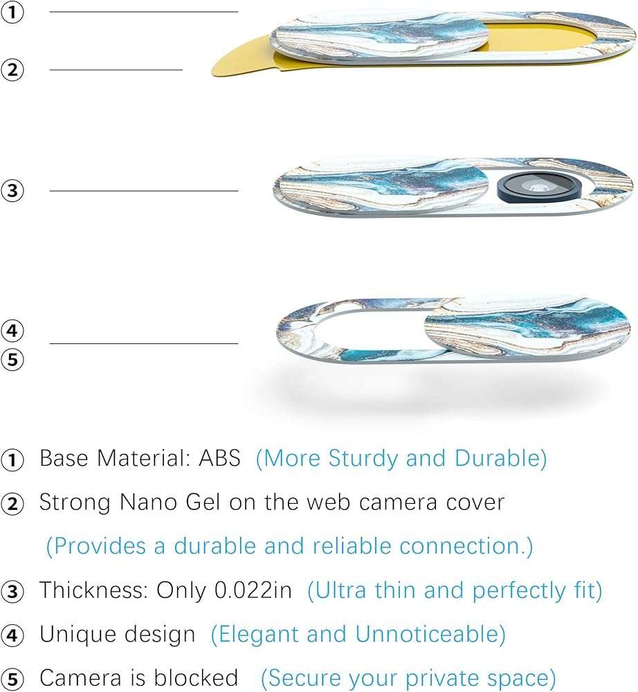 سهل الاستخدام: يمكن فتح غطاء عدسة الكاميرا أو إغلاقه بحركة الإصبع. كل ما تحتاجه هو تنظيف سطح أجهزتك، حيث يوفر جل النانو القوي الموجود على غطاء كاميرا الويب اتصالاً متينًا وموثوقًا بين أجهزتك وأغطية كاميرا الويب.