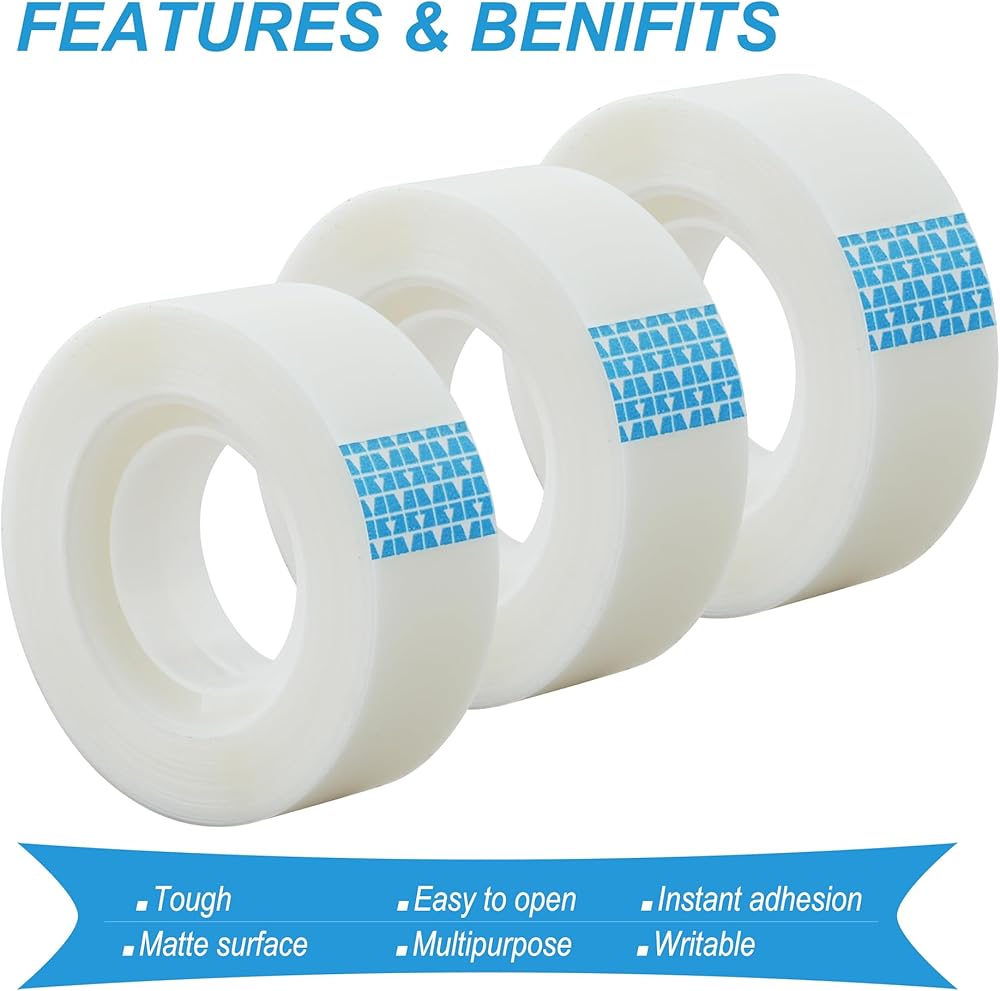 .Wide Applications: The tape can be used for repairing documents, packaging, envelopes, sticking photos or files on walls, as well as for DIY crafts. Suitable for various occasions such as offices, homes, and schools.