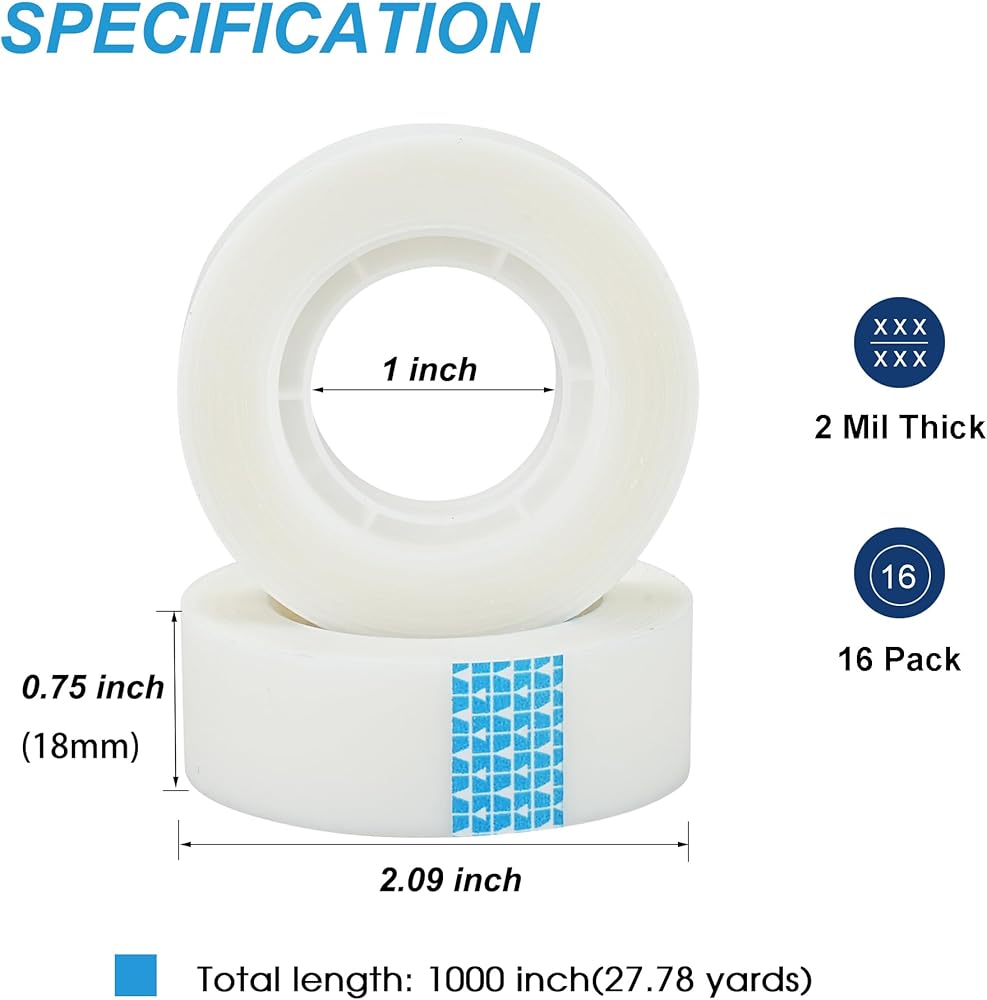 Classic Size: Each roll of tape is 0.75 inches (19mm) wide and 1000 inches (25.4 meters) long; fits standard tape dispensers, and tears easily with a light force in one direction.