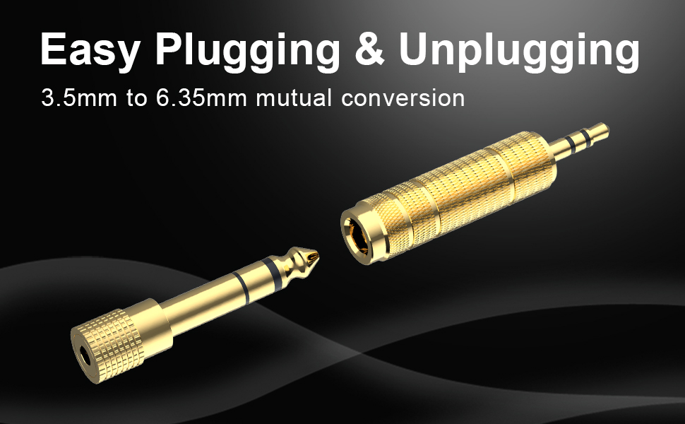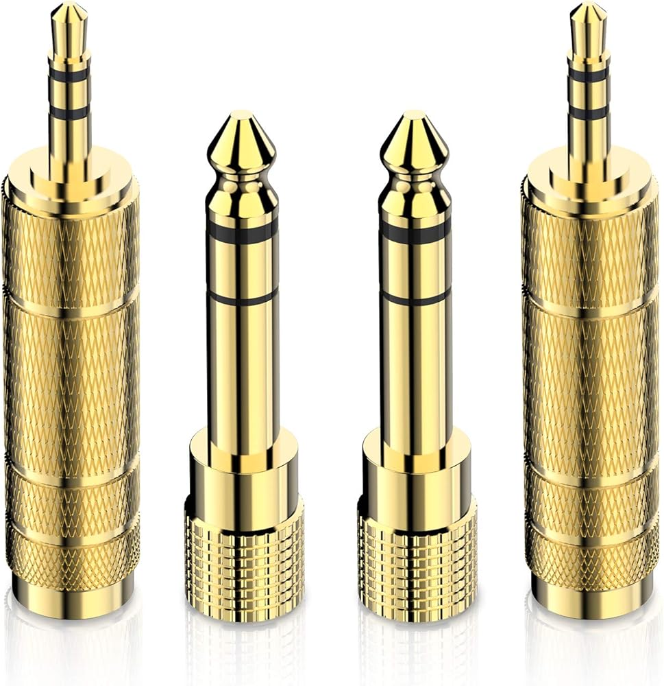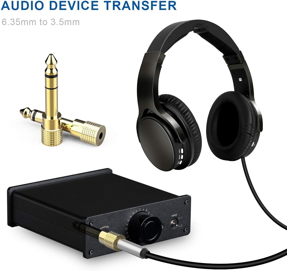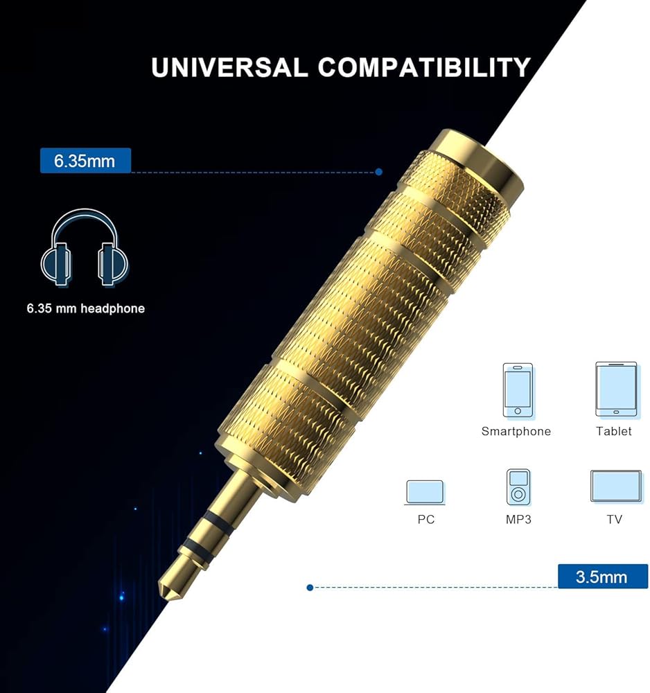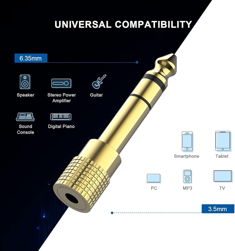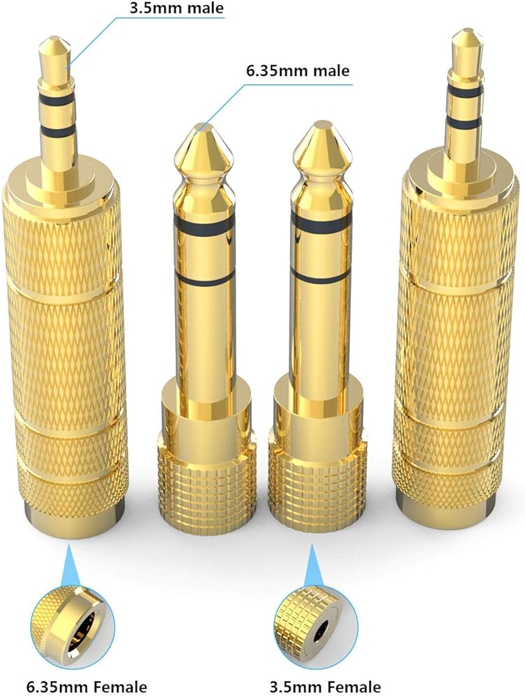 محول أنثى 3.5 ملم ذكر إلى 6.35 ملم: مناسب لمنفذ ستيريو 3.5 ملم (1/ 8 بوصة) لقبول كابل ستيريو (مثل سماعات الرأس 6.35 ملم) مع قابس قياسي 6.35 ملم (1/ 4 بوصة).