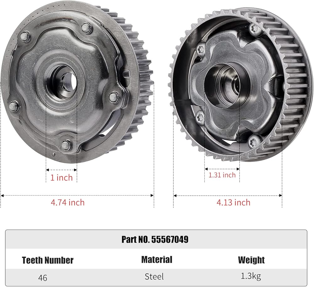 【Package Include】1x Intake Camshaft Gears Timing, 1x Exhaust Camshaft Gears Timing, 2x Mounting Bolts;The same dimensions as the original factory replacement part and easy to install.Please carefully compare the pictures or OE numbers to match your original parts.