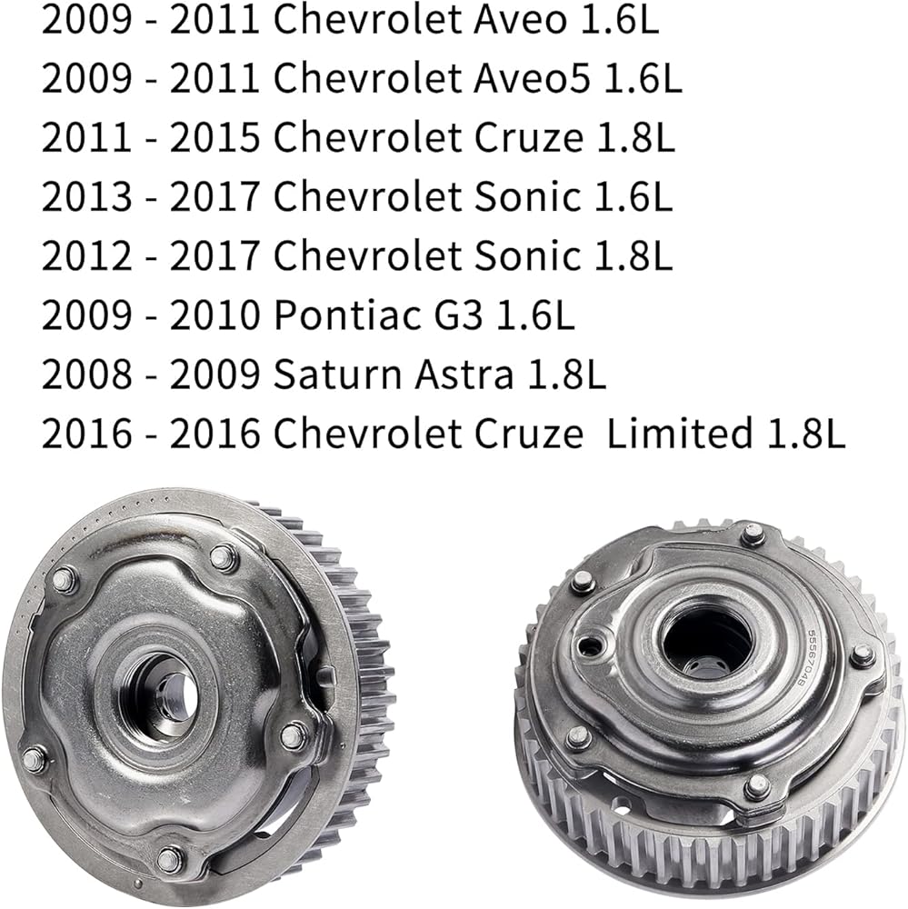 【Compatible with】 Exhaust Camshaft:For 2009-2011 Chevrolet Aveo 4 Cyl 1.6L | 2011-2016 Chevrolet Cruze 4 Cyl 1.8L | 2012-2018 Chevrolet Sonic 4 Cyl 1.8L | 2019 Chevrolet Trax LS | 2009-2010 Pontiac G3 4 Cyl 1.6L | 2008-2009 Saturn Astra 4 Cyl 1.8L