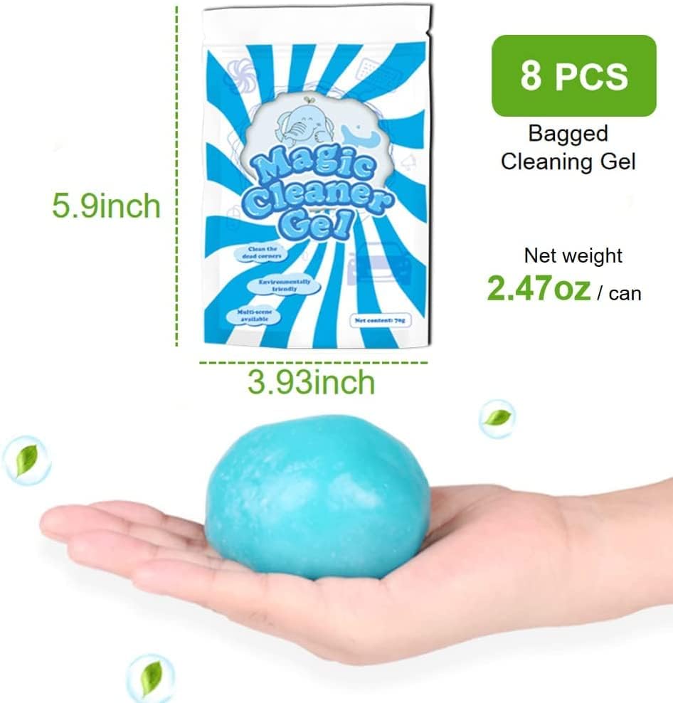 More Quantity: There are 8 bags in total. The net weight of each cleaning gel is 2.47 oz, which is larger and heavier than others. It can easily remove the dust and debris in the car. You can use it yourself or give it to friends or family.