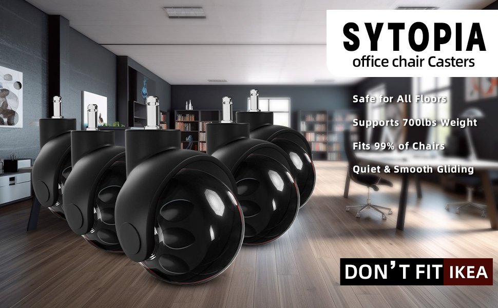 مجموعة عجلات عجلات كرسي المكتب مكونة من 5 قطع - بديلة لسجادة كراسي المكتب آمنة لجميع الأرضيات بما في ذلك الخشب الصلب - استبدال المطاط 2 بوصة - ناعمة وصامتة - حجم عالمي (11 × 22 مم) - أسود