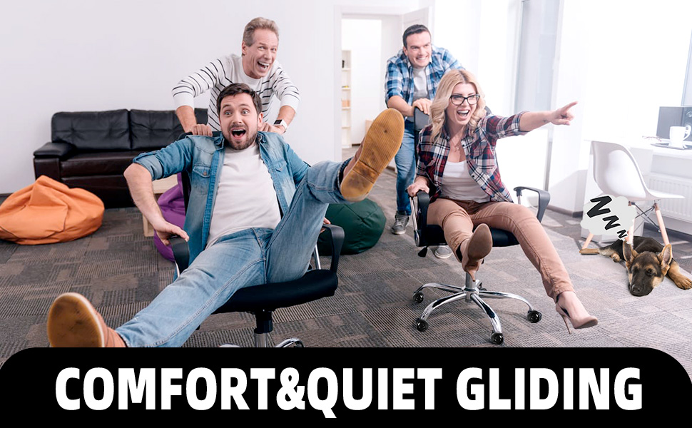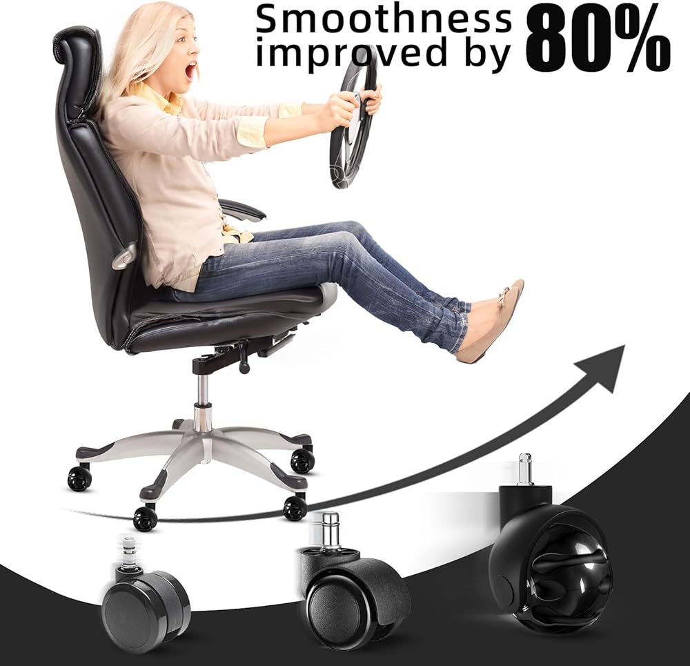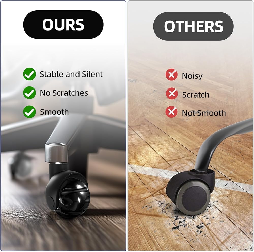 🥇 انزلاق سلس وصامت - استمتع بمزيج مثالي من النعومة والصمت مع عجلات الكرسي. يضمن التصميم والمواد المتقدمة انزلاقًا هادئًا وسهلاً، مما يسمح لك بالتحرك في مكان العمل الخاص بك بسهولة.