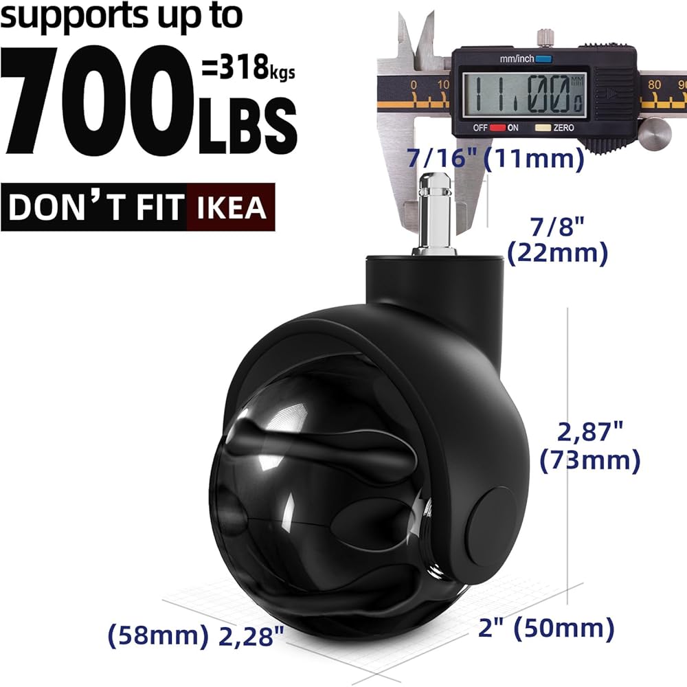 🥇 تدعم وزن 700 رطل (317 كجم) - تتميز عجلات الكرسي بتصميم قوي مزدوج العجلة للحصول على الدعم الأمثل والمتانة، وتتحمل ما يصل إلى 700 رطل (317 كجم) من الوزن. اشعر بالثقة والأمان في أداء كرسيك.