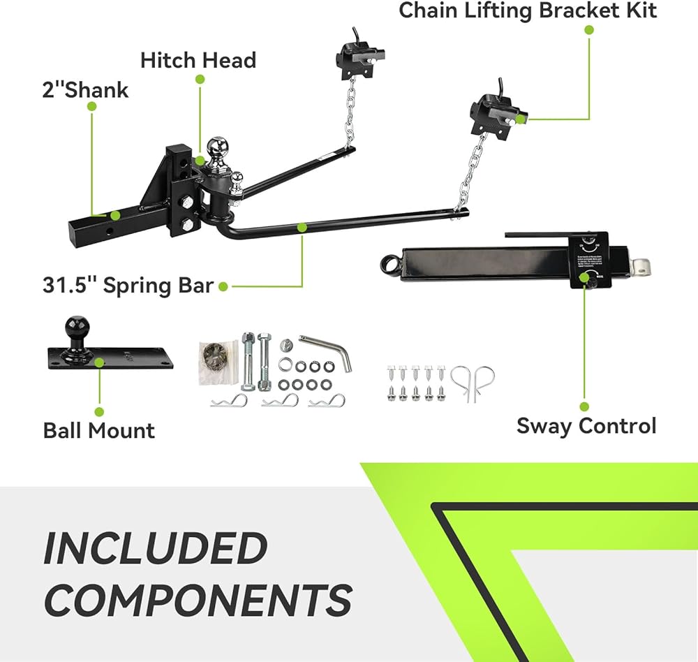 🚩وصلة توزيع الوزن RVMATE توفر قوة موثوقة. إنه مصنوع برأس فولاذي مشكل ويتميز بقضبان زنبركية فولاذية يبلغ طولها 31.5 بوصة. نطاق وزن اللسان 1000-1200 رطل؛ الحد الأقصى للوزن الإجمالي 12000 رطل.