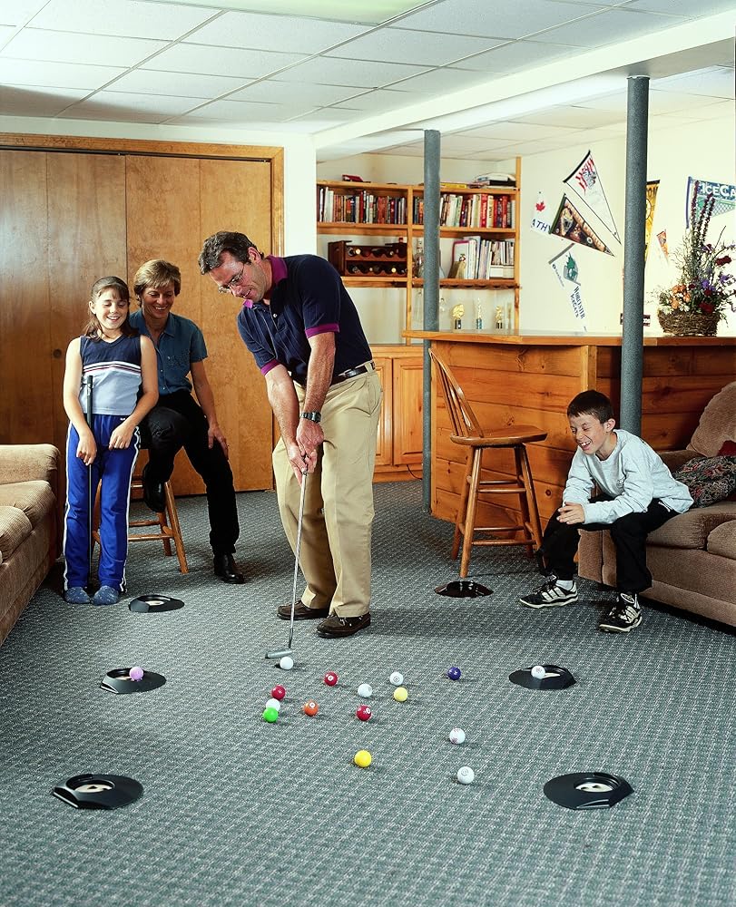 Putter Pool is the perfect gift for any golfer. This compact putting game plays like golf and shoots like pool and can be set up quickly indoors or out. Includes two sets of billiard style golf balls and a 'cue' ball plus six putting cups that may be set up in a billiard-style format. Play the suggested games or makeup your own, great for 1 to 4 players.