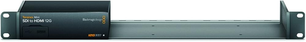 1RU Teranex Mini Rack Shelf for 19" racks from Blackmagic Design. This shelf is well-suited for road cases as well as equipment racks. Fits all Teranex Mini Converters, ATEM Television Studio HD, Web Presenter, and HyperDeck Studio Mini. Teranex Mini are designed to be racked side by side, with three converters fitting in 1RU, six in 2RU, and nine in 3RU. When multiple units are racked side by side, variable speed fans pull from one unit into the next to facilitate optimal air flow. If a fan fails adjacent Teranex Mini will increase fan speed, to prevent overheating! And because they're small and lightweight, you can even mount them in the rear of a rack or road case!