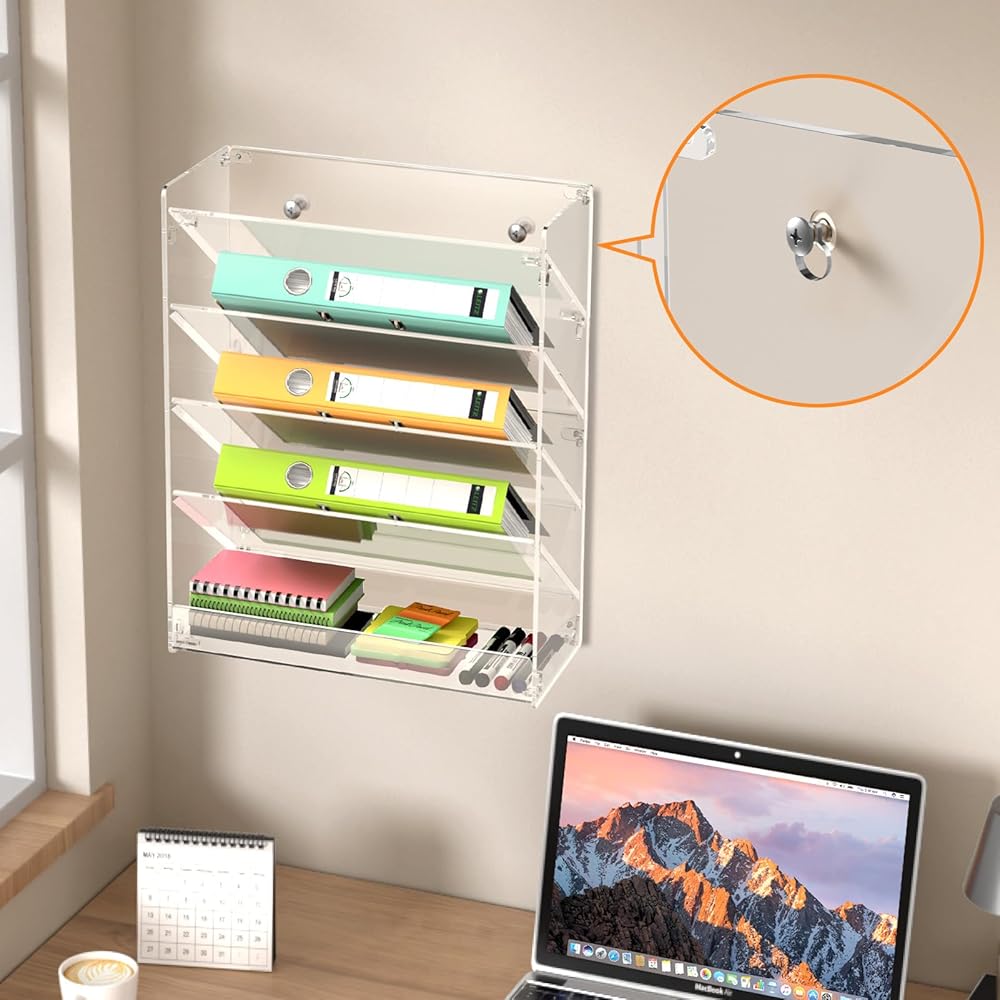 أكريليك فاخر: مادة الأكريليك عالية الجودة تمنح منظم ملفات الحائط مظهرًا جميلاً وراقيًا مع ملمس عصري، مما يجعله مناسبًا تمامًا للاستخدام في المكاتب أو المنازل أو المدارس. تسمح مادة الأكريليك الشفافة برؤية العناصر المخزنة بوضوح، مما يجعل من السهل العثور على ما تحتاجه.